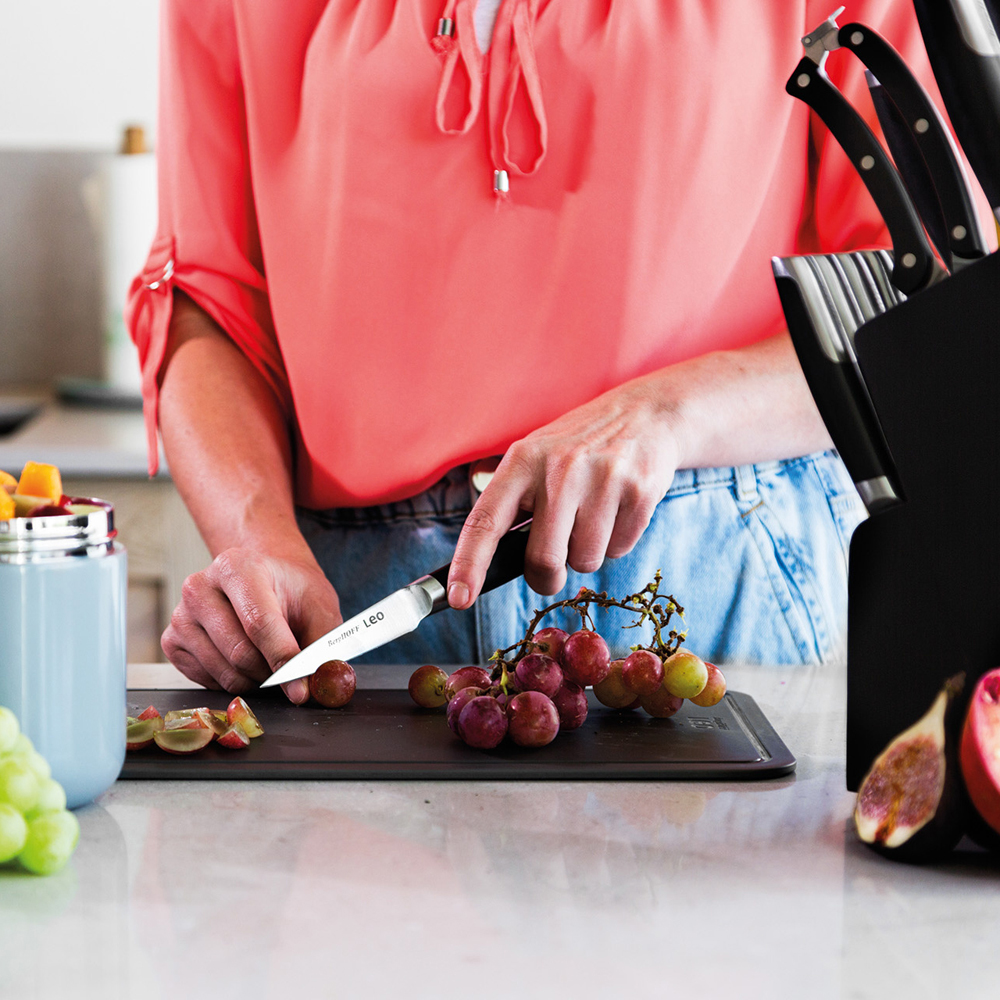Рукоятка ножа виготовлена з міцного бакеліту, не ковзає, тому користуватися таким ножем дуже зручно. Головні характеристики такого ножа – практичність, ідеальне балансування та безпека при використанні. Не потребує особливого догляду. Рекомендується мити вручну.