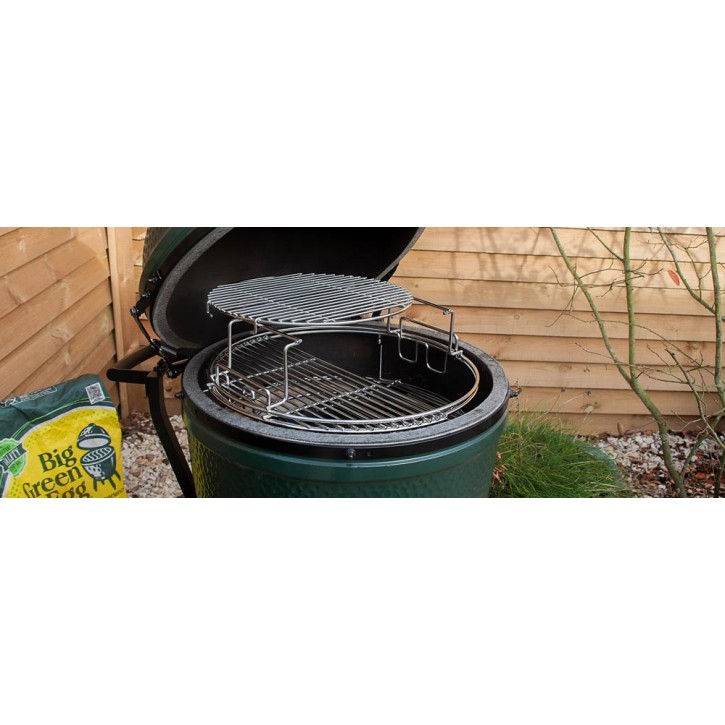 Это великолепное приспособление Big Green Egg 121219, позволяет по максимуму использовать свои способности в приготовлении блюд с EGG. Это двусоставная многоуровневая решетка Multi-Level Rack имеет подвижную решетку с зазором 10 см между уровнями. Она позволяет готовить над и под основной решеткой. Можно использовать со стандартной стальной решеткой. Можно приобрести в наборе Big Green Egg 121226 5-Piece EGGspander Kit и используется с корзиной для теплозащитного экрана и двумя полукруглыми решетками из нержавеющей стали. Таким образом, этот набор является отличным дополнением для каждого поклонника EGG. Набор совместим с грилем Big Green Egg XLarge 117649, и другими Камадо диаметром решетки до 61 см.