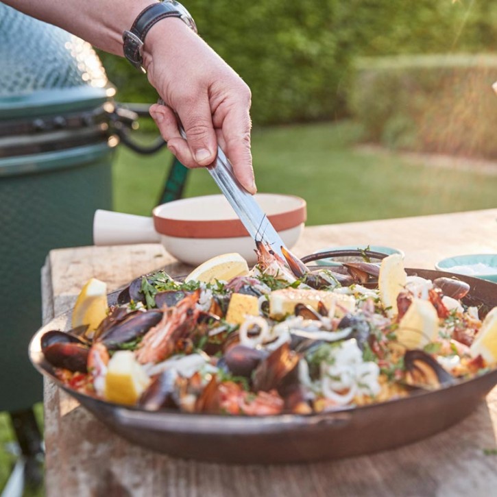 Сковорода Big Green Egg 002167, объемом 3,8 л. для приготовления различных видов изумительного по вкусу блюда испанской кухни – знаменитой паэльи. Но этим её функциональность не ограничивается. Сковорода прекрасно послужит в качестве классического вока, в котором готовятся быстрые блюда азиатской кухни. Эта практичная сковорода из нержавеющей стали для блюд стир-фрай (жарить помешивая), идеально подходит для жарки мяса, птицы, рыбы и овощей. Её можно использовать для приготовления многих других блюд, таких как рис, паста и блюда стир-фрай с карри, рататуй и жареный картофель. Данная модель сковороды изготовлена из высококачественной нержавеющей стали, можно мыть в посудомоечной машине. Имея диаметр 36 см, подойдёт к любым грилям большего размера