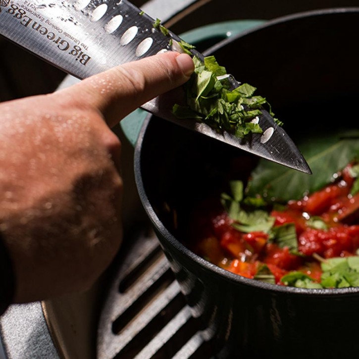 Нарезка мяса и птицы, чистка и нарезка овощей, фруктов и рыбы – это частые задачи во время приготовления пищи, и ножи должны быть острыми и качественными. Существует причина, почему ножи являются очень ценными для любого шеф-повара. Набор ножей Ergo Chef Big Green Egg 117687, в который входит нож повара с лезвием 20 см и небольшой нож для чистки овощей с лезвием 9 см, удовлетворит самого требовательного шеф-повара, и справятся и с грубой, и с тонкой работой. Ножи имеют эргономичный дизайн и сделаны из высококачественной стали. Надежный захват и оптимальный контроль. Изогнутую ручку поварского ножа удобно держать, а ручка ножа для чистки овощей достаточно длинная и широкая, благодаря чему с ним приятно работать и им легко управлять. Чехлы для лезвий входят в комплект. Ножи не рекомендуется мыть в посудомоечной машине. После ручной мойки вытереть насухо. Изготовлены из немецкой нержавеющей стали с высоким содержание углерода. Эргономичная ручка для комфортного использования.