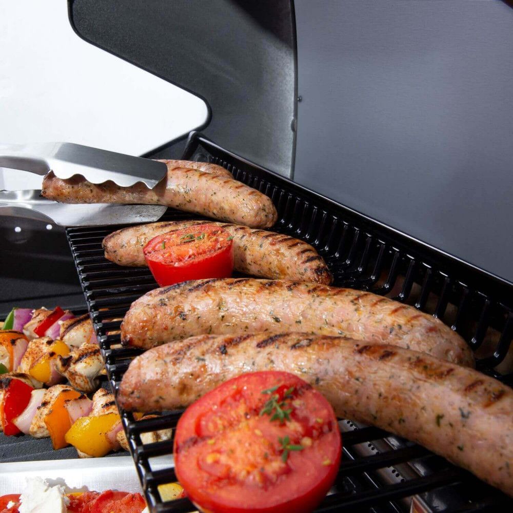 Привлекательный дизайн, складные полки, двухсторонние чугунные решетки, общим размером 65×44 см., 4 мощных горелки Dual-Tube позволят готовить для большой компании и сделают гриль Broil King® Baron™ 440 приятным дополнением Вашего сада. Обновлённый дизайн, складные полки, двухсторонние чугунные решетки, мощная боковая горелка и подсветка ручек управления помогут готовить даже в темное время суток.