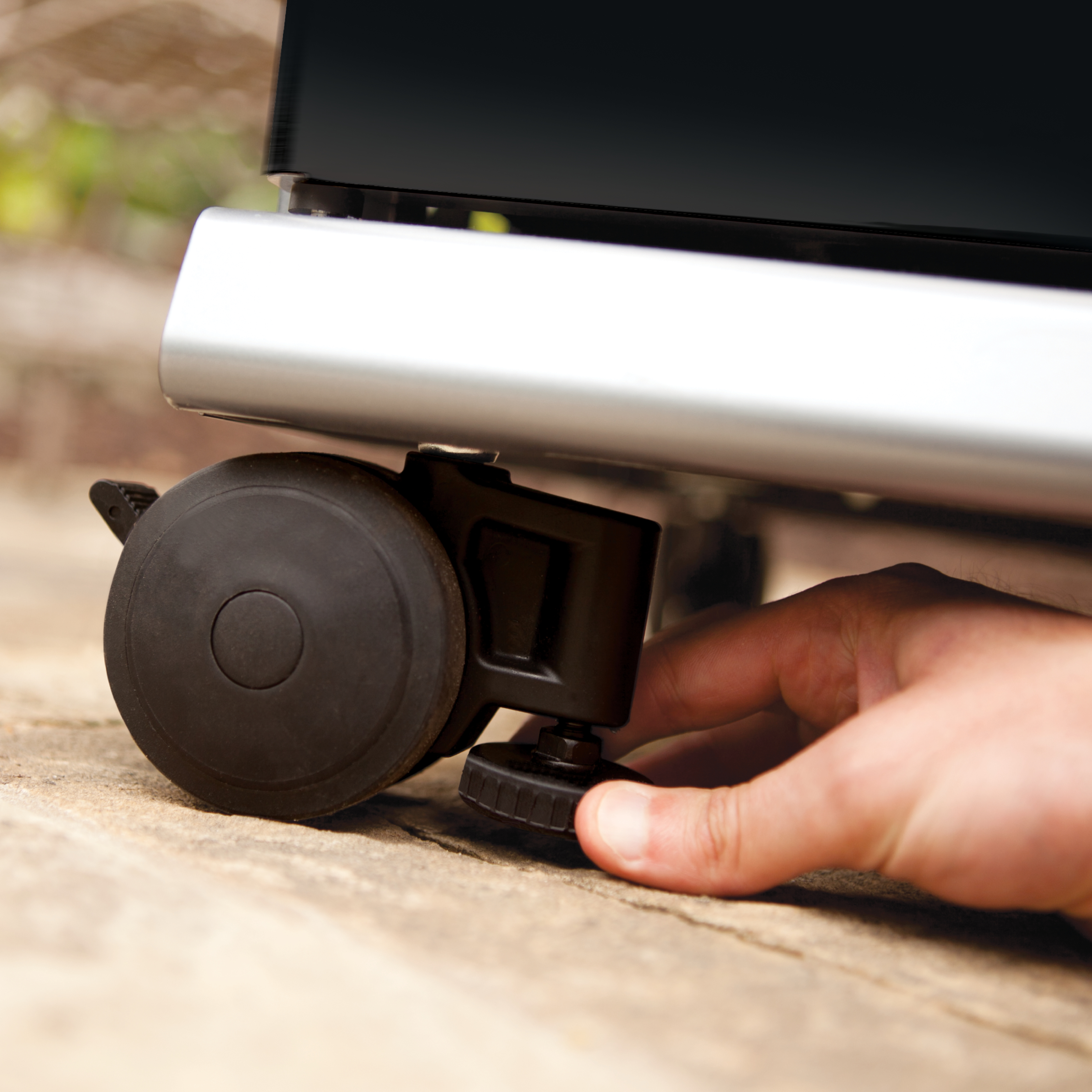 Передние колеса гриля снабжены регуляторами высоты которые помогут надежно зафиксировать Ваш гриль на патио или не ровной поверхности.