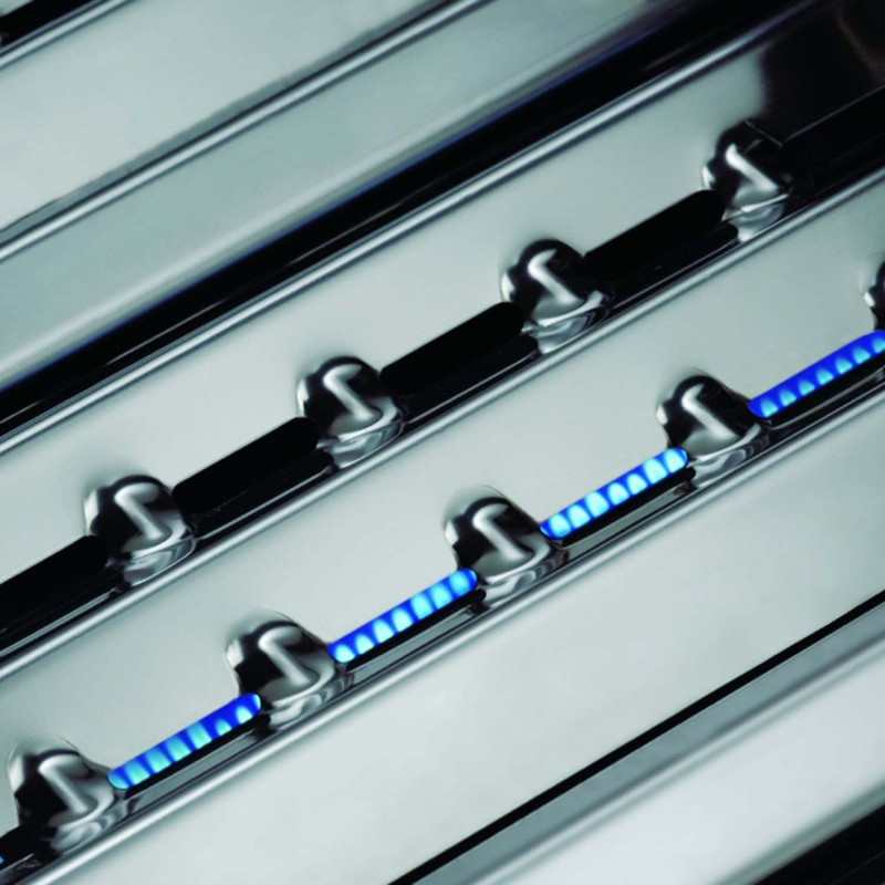 Мощный электромотор и дополнительная задняя горелка расположенная вдоль духовки гриля позволит готовить настоящие шедевры. Благодаря продуманной современной конструкции духовки на вертел можно устанавливать даже крупную дичь.