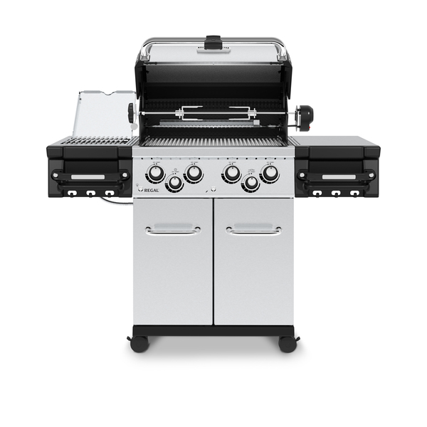 Профессиональные мощные двусторонние решети из чугуна, электрический вертел, боковая инфракрасная горелка, подсветка ручек, легендарная кулинарная система Broil King и привлекательный внешний вид сделают гриль Broil King® Regal™ S 490 PRO Вашим самым любимым садовым прибором и украшением Вашего загородного дома.