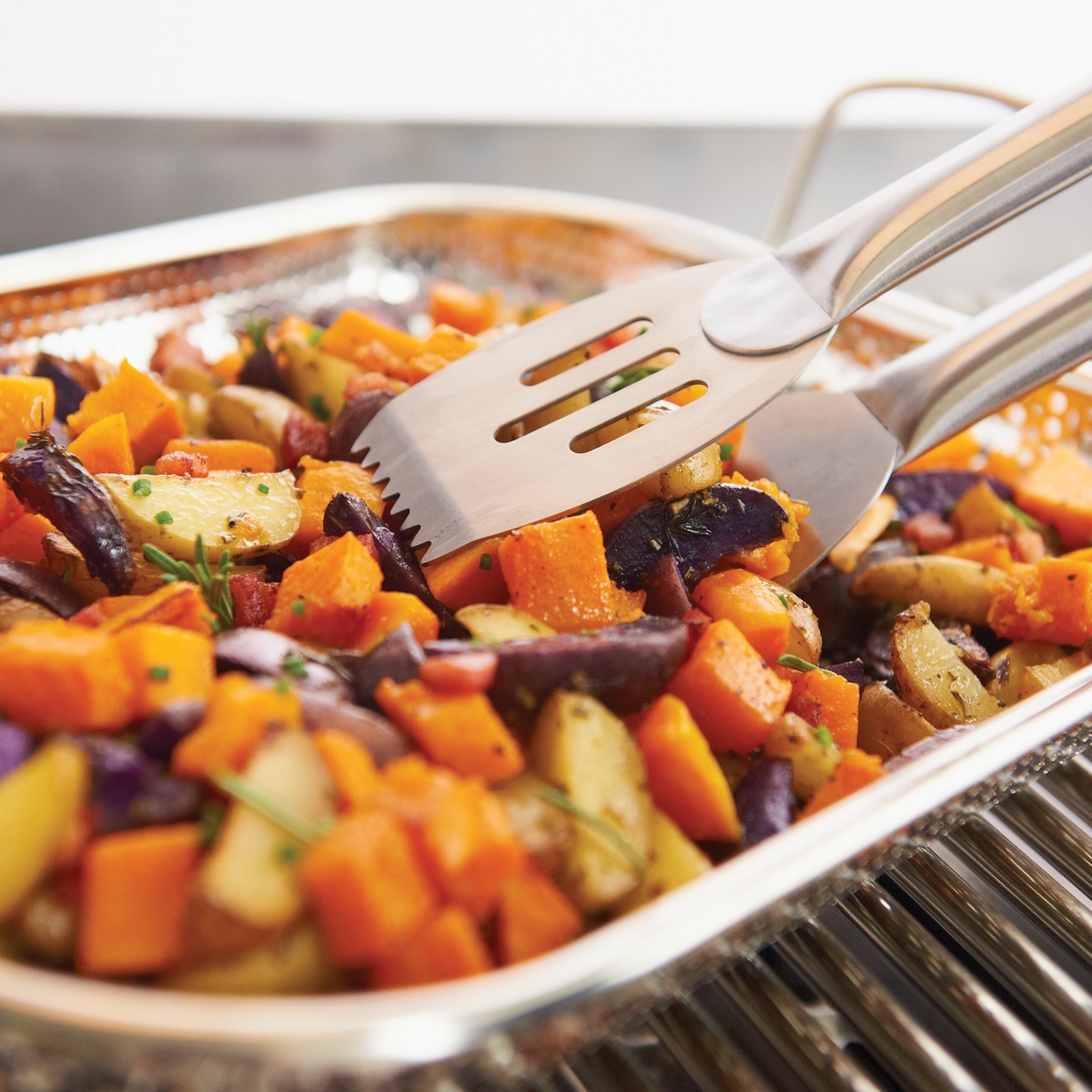 Корзина для жарки овощей Broil King® 69819, изготовлена из очень тонких и прочных нержавеющих нитей. Размеры 45 х 28 х 11 см позволяют поместить достаточно много мелких продуктов, которые могут провалиться между прутьями стандартной решётки. Корзина, с высокими бортами для удобного перемешивания продуктов, идеально подходит для обжаривания лука, мелких морепродуктов и деликатных овощей. Просто возьмитесь за ручки и встряхните содержимое одним движением. Можно использовать как дуршлаг. Великолепный дизайн делает процесс приготовления на противне удобным, функциональным и универсальным. Нержавейка придаёт исключительную прочность изделию и облегчает его чистку. После использования корзину можно легко очистить в посудомоечной машине.