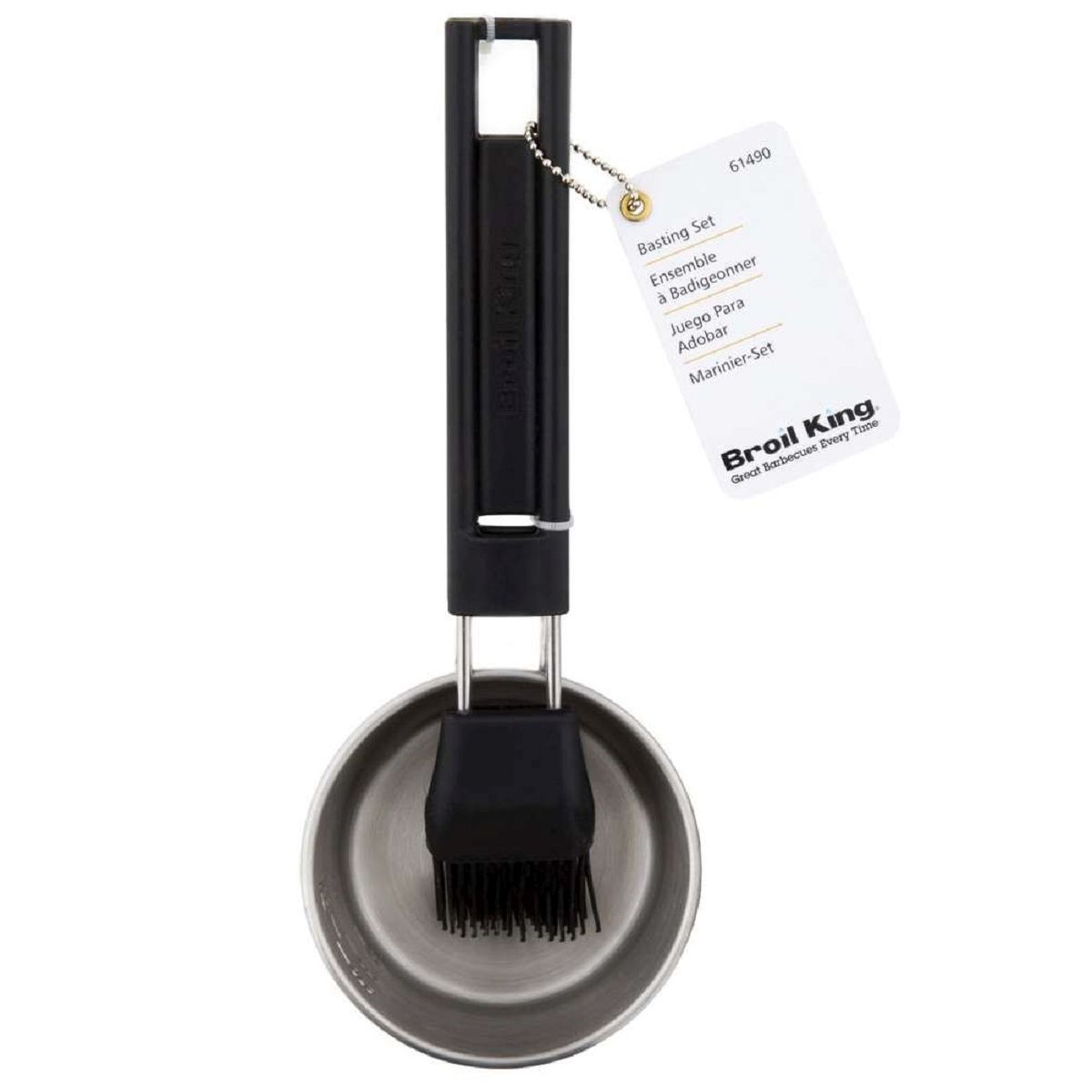 Набор для смазывания Broil King® 61490 - силиконовая кисточка для смазывания 15,3 см и чашка из нержавеющей стали со встроенной мерной шкалой для приготовления точного количества соуса. Чашку можно использовать на боковой горелке или прямо на поверхности гриля, а силиконовая кисточка выдерживает температуру до 260°C.