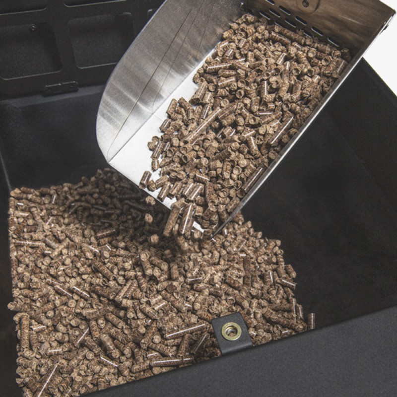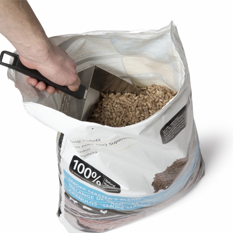 Удобный совок Broil King 63946 облегчает добавление пеллетных гранул, через встроенный просеиватель. Градуированное основание черпака позволяет измерять порции гранул. Также подходит и для древесного угля, где просеиватель удаляет пыль