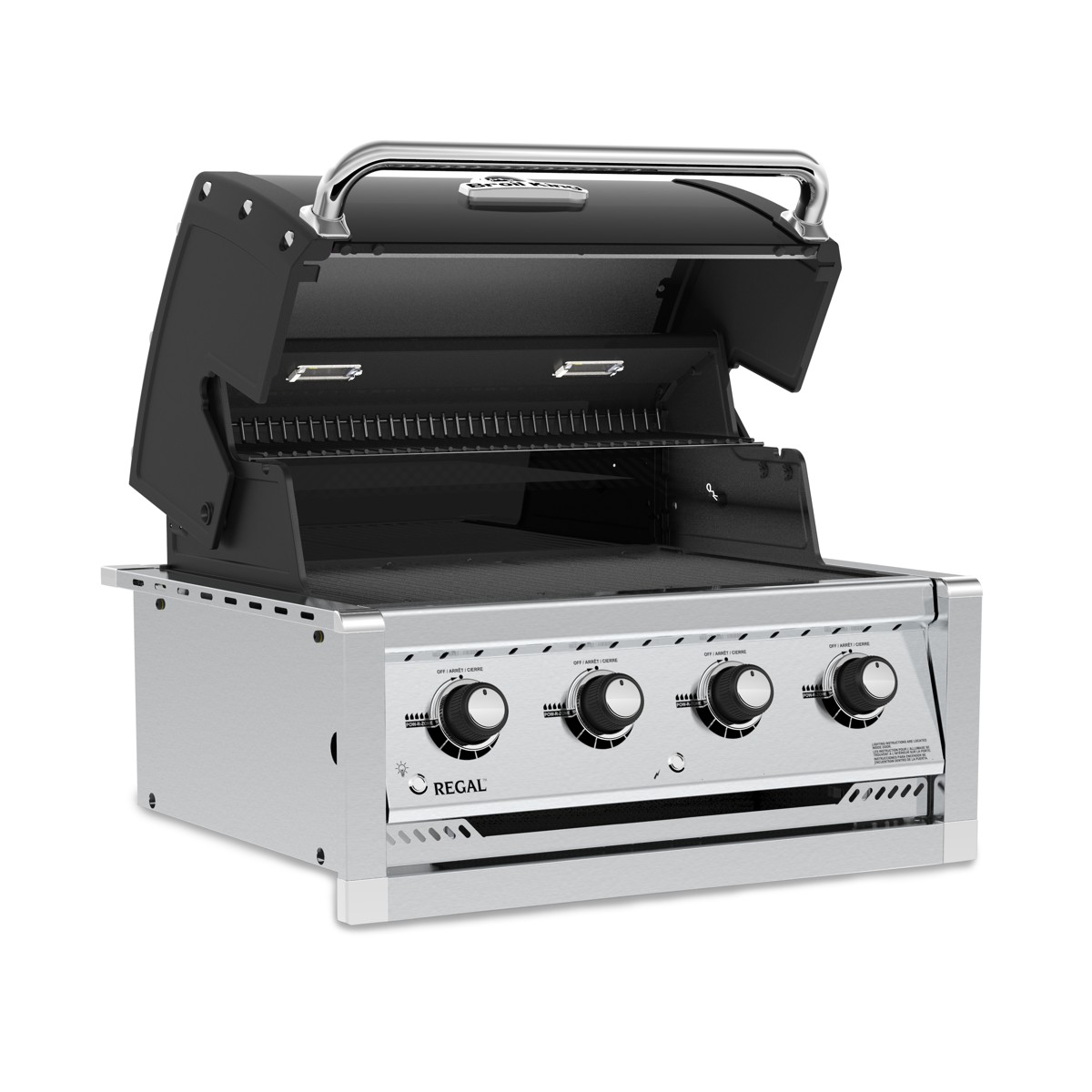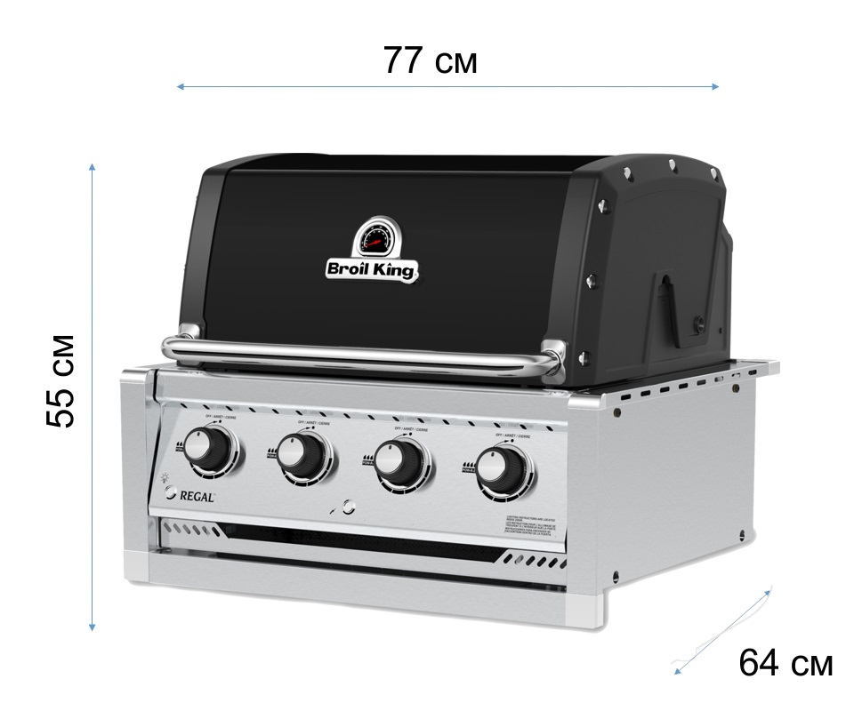 Встраиваемый газовый гриль Broil King® Regal™ 420 доступное решение для вашей загородной кухни. Гриль имеет 4 независимых горелки, мощную двустороннюю чугунную решетку и яркий выразительный дизайн. Ручки гриля снабжены подсветкой, а особая конструкция духовки позволяет использовать столешницу и отделку из горючих материалов.