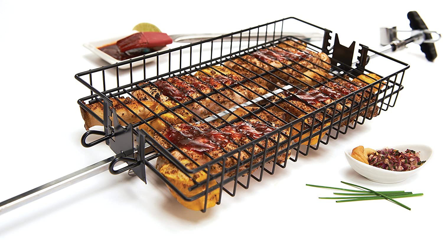 Grillpro 24785 — это специальная сетка из высококачественного металла, которая имеет уникальное антипригарное керамическое покрытие и предназначена для приготовления на вертеле. Сетка достаточно больших размеров, в то же время низкая, для небольших кусков мяса или овощей, она способна защищать продукты от пригорания. Пища прожаривается равномерно, она получается сочной и с румяной корочкой. Одним словом такая превосходная долговечная, надёжная сетка обязательно должна быть у каждого владельца гриля, потому что в ней пища готовиться быстро и качественно.