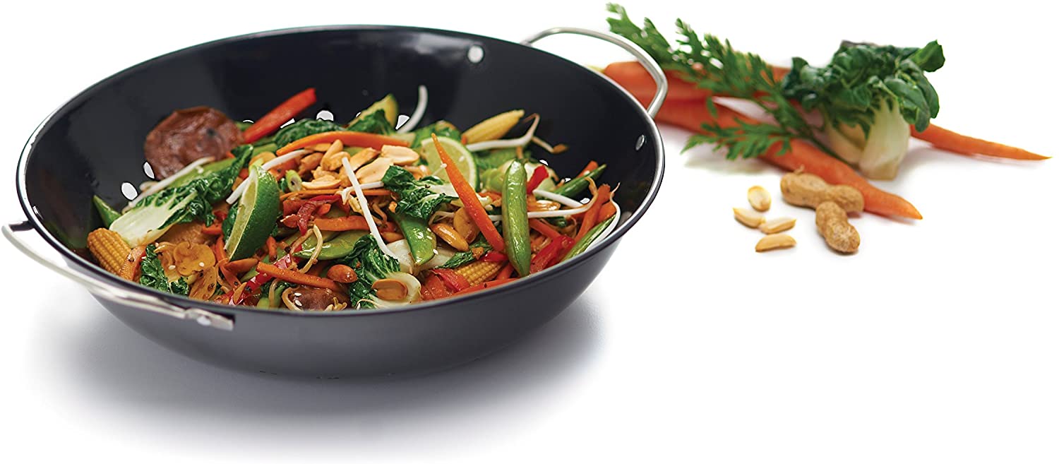 Круглый перфорированный вок Grillpro 98130, предназначен для жарки на гриле пищи, порезанной небольшими кусочками. Желаете приготовить в гриле нежные морепродукты или рыбу? Это возможно с перфорированной корзиной. Она также идеально подходит для мелко нарезанных овощей, долек картофеля, обжарки кабачков и баклажанов, стручковой фасоли, грибов, или, например, спаржи. Перфорированный вок, легко, без каких-либо усилий ставится и снимается с решётки из нержавеющей стали или чугунной решётки.