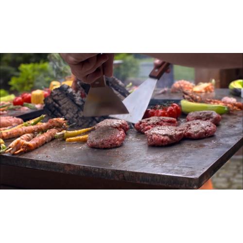 Верхняя пластина выполнена из закаленной углеродистой стали толщиной 15 мм. Этот вид материала предотвращает изменения формы при воздействии высокой температуры. Внутренняя чаша выполнена из нержавеющей стали и ее можно вынуть для чистки. Это означает, что все после использования можно легко очистить и чаша, может быть, как новая для повторного использования.