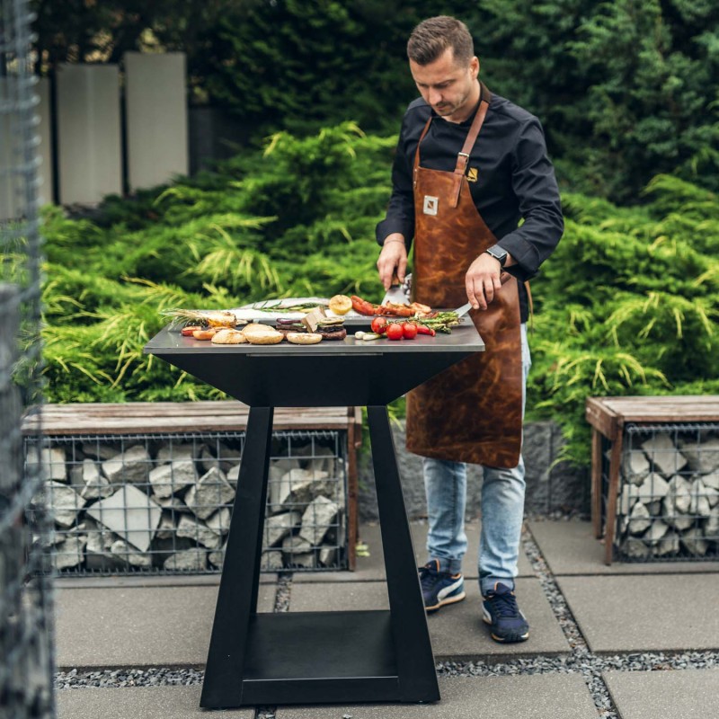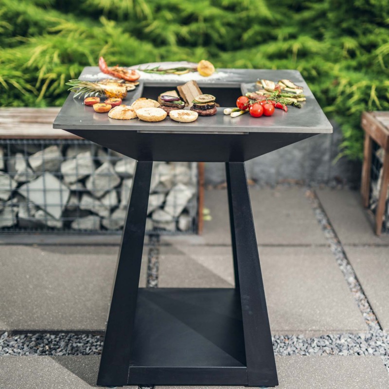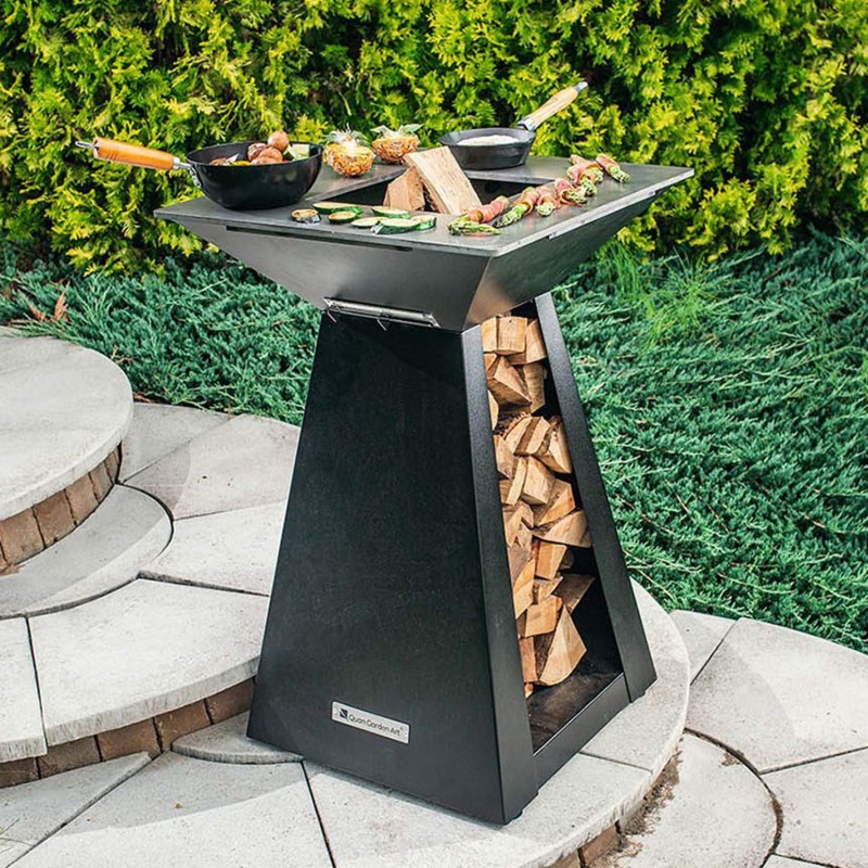 Quadro BASIC Small - инновационный многофункциональный очаг. Это многофункциональное устройство предназначено для использования на открытом воздухе. Очаг представляет собой коническую чашу на пьедестале. Сверху нее устанавливается жарочная плита-сковорода. Жарочная плита подогревается равномерно, что позволяет не только готовить, но и разогревать блюда на ней.