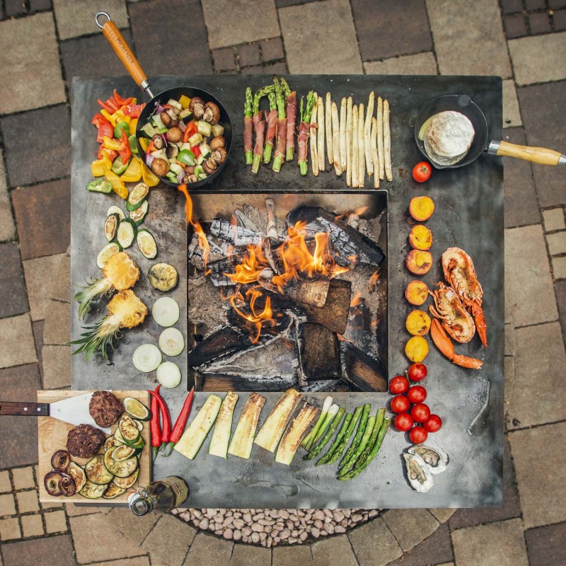 В зависимости от погодных условий и вида древесины, используемого для горения, верхняя плита может достигать температуры более 400 °C в центральной области. Внешняя область пластины остается немного прохладнее, что идеально подходит для контроля скорости приготовления. Конусообразная чаша для костра имеет широкий, плоский обод, который может быть использован как высокоэффективная жарочная поверхность. Температура жарочной панели регулируется расположением дров внутри конуса и меняется от 250 до 380 градусов. Эта особенность очага позволяет готовить одновременно несколько блюд при различных температурах. На решетке-гриль готовят сразу после закладки дров, а на жарочной поверхности- через 20-25 минут. На дополнительно установленную решетку-гриль можно поставить казан, кастрюлю, сотейник, чайник, турку и многое другое.