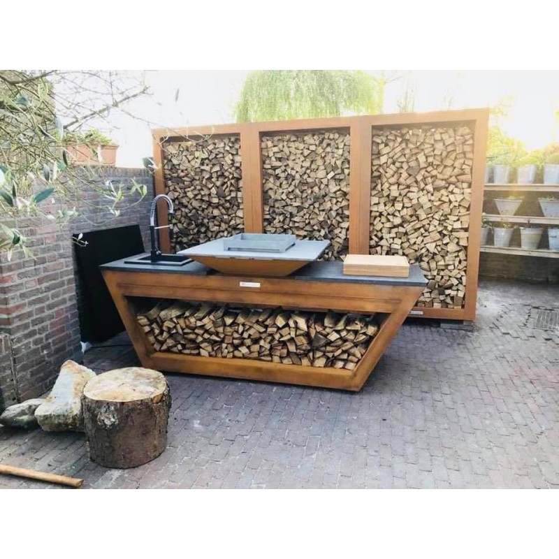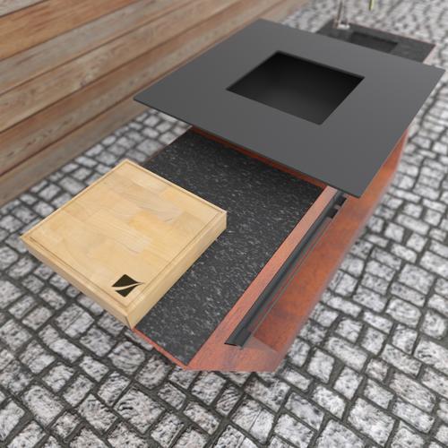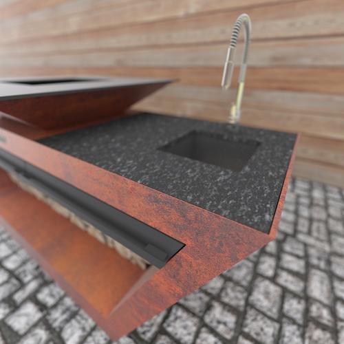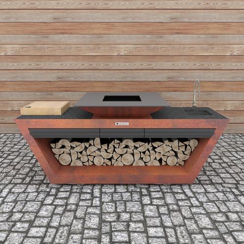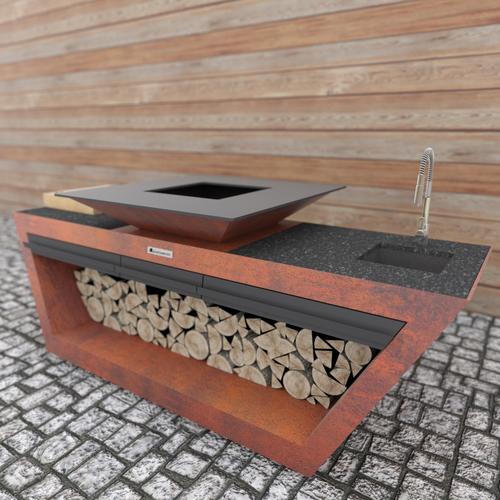 Quan Garden Art Кухня гриль-очаг Quadro Premium Коричневая (с системой водоснабжения)