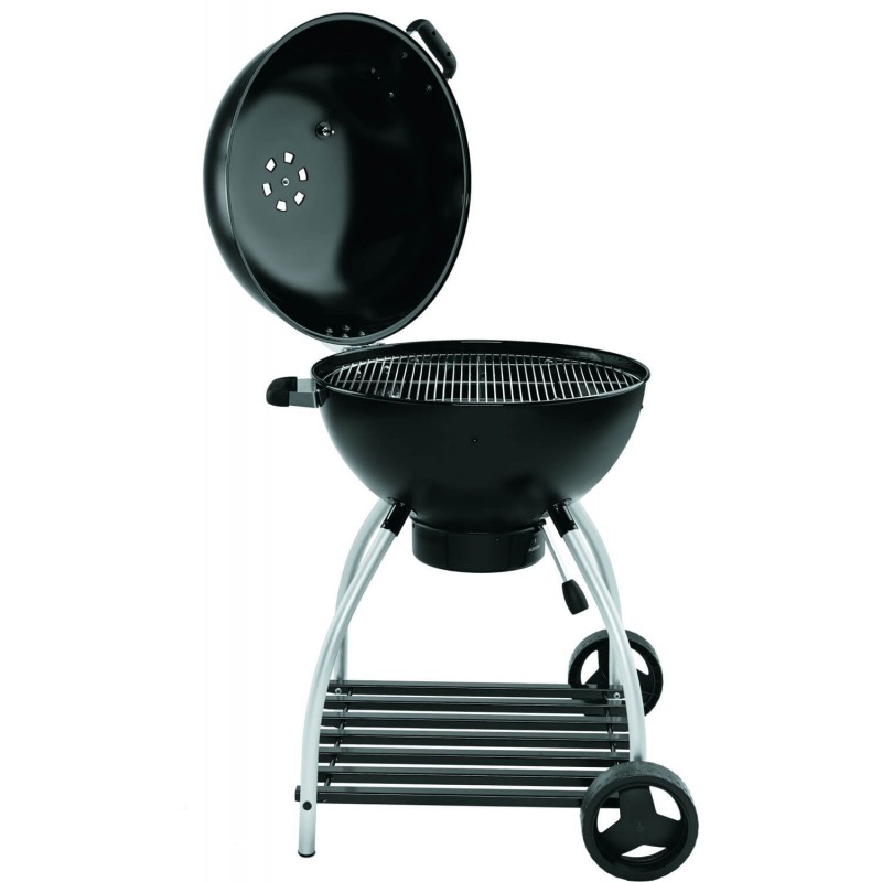 УДОБНАЯ «ХОЛОДНАЯ» РУЧКА: место распроложения ручки на крышке гарантирует, что открывать крышку гриля можно без использования термозащитных перчаток. Рабочая поверхность на 15% больше, чем в грилях с диаметром решётки 47 или 57 см.Практичный релинг вокруг корпуса гриля: для крепления аксессуаров или опционального столика.