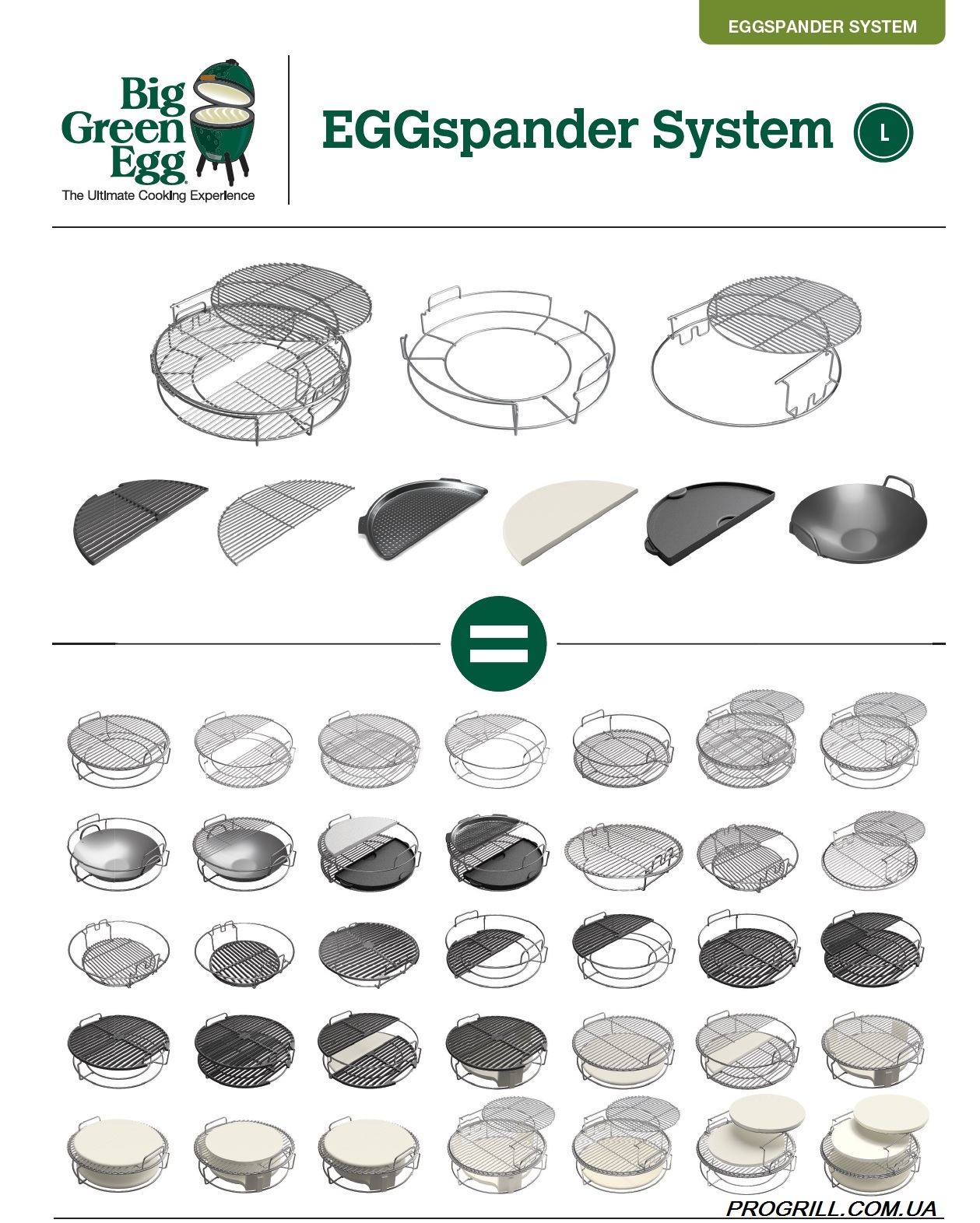 Big Green Egg відоме не тільки своїми можливостями та винятковою якістю самого виробу. Широкий вибір аксесуарів, що додаються до нього, є щонайменше унікальним. В даний час налічується понад 130 різних пристроїв. Залежно від Ваших кулінарних захоплень, Ви можете підібрати додаткові аксесуари до Вашого Big Green Egg.