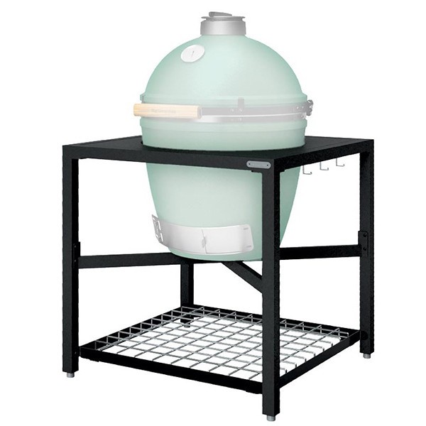 Почніть з базового модуля EGG Frame Big Green Egg 120212. Він включає: металеву підставку, обладнану спеціальними обмежувачами, які надійно фіксують гриль в центрі конструкції, полицю-сітку з нержавіючої сталі, на яку можна покласти різні аксесуари для приготування, або вугілля, гачки для приладдя та 4 регульовані ніжки, для легкого вирівнювання модуля на поверхні. Ніжки та рама модуля виготовлені з алюмінію з порошковим покриттям та сталі. Під ніжками можна змонтувати 10-сантиметрові поворотні колеса. Переробка – це стрес, а споруда – радість. EGG Frame, забезпечить не тільки комфортну зону для роботи з продуктами біля гриля, а й стане гарним фоном для фото Ваших шедеврів, Instagram чекає. Цей модуль спеціально для гриля Big Green Egg Large 117632. Стіл підходить для всіх Камадо грилів діаметром решіток до 46 см.