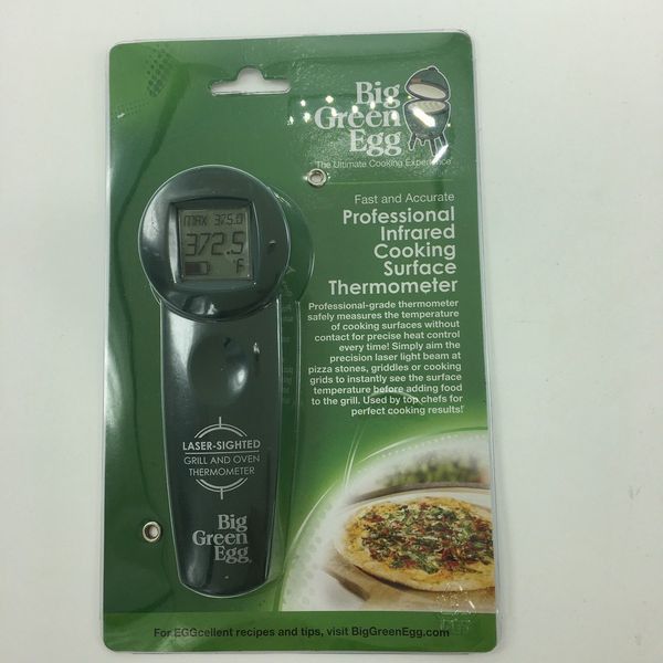 Безконтактний інфрачервоний професійний термометр BigGreenEGG 114839 з діапазоном шкали від 0 до 427ºC для вимірювання температури варильних поверхонь з надзвичайною точністю. Направте промінь лазера на керамічний камінь для випікання, пательню, чавунну решітку або, наприклад, перфороване деко для перевірки температури перед тим як розмістити на них їжу. Бездротовий інфрачервоний професійний термометр BigGreenEGG 114839, швидко виміряє температуру будь-якої поверхні, стане практичним інструментом на кухні чи біля гриля і буде улюбленою іграшкою ваших дітей.