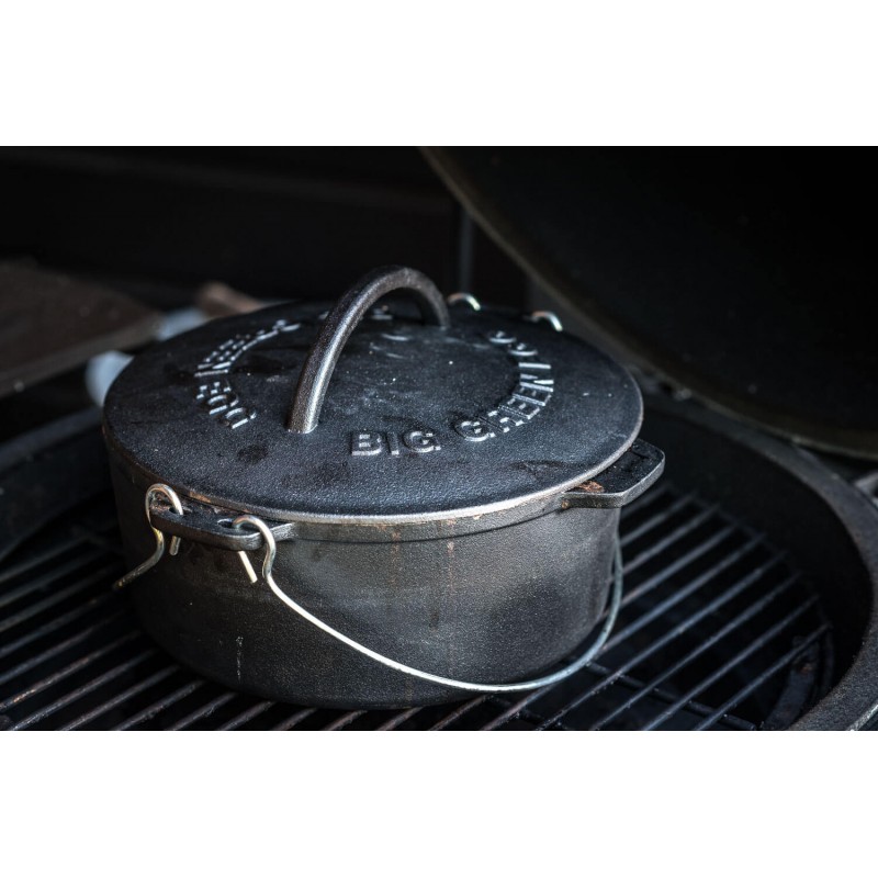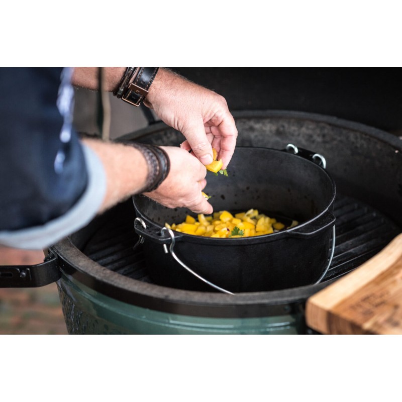 Чавунна голландська духовка Big Green Egg 117052 DO - це традиційний національний посуд з ручками, призначений для запікання на грилі. Казан ідеально підходить для приготування таких страв, як запіканки, пюре, суп або просто чудовий шматок тушкованого м'яса. Духовка дозволяє готувати і традиційні для гриля страви – запечене м'ясо, рибу, реберця, птицю, овочі, так і здивувати друзів пирогом, супом або борщем. Багатофункціональна, практична та надійна чавунна духовка дозволяє розкритися кулінарному таланту у всій красі. Гурмани гідно оцінять її здатність отримувати максимум смаку та аромату з продуктів, довго зберігати страву гарячою. Дві зручні ручки спрощують поводження з духовкою. Котел призначений для варіння, томлення та смаження. Витримує температуру до 232 °С