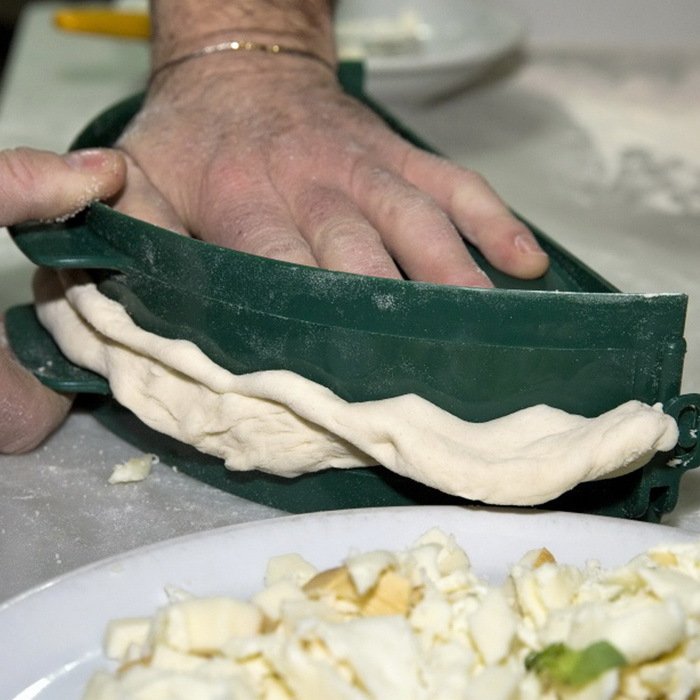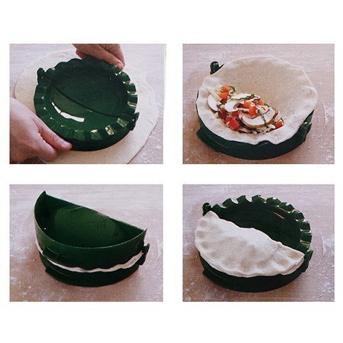 Прес для кальцоні Big Green Egg 114174, діаметром 16 см, розрахований на 125 мл начинки, якщо ж він Вам замалий, візьміть прес для кальцоні Big Green Egg 114181, для приготування подвійної порції (діаметром 28 см, розрахованим на 250 мл).
