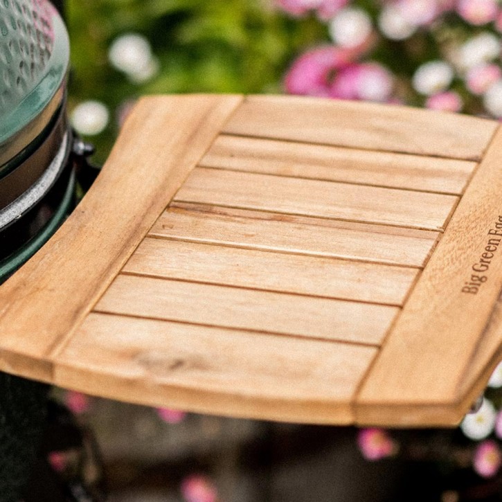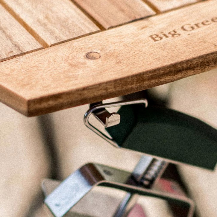 У будь-якій справі не завадить гарний напарник. Для Big Green Egg – це пара бічних робочих столиків Acacia Wood EGG Mates® 121844. На ці ідеальні бічні столики до грилю, для Ваших інгредієнтів та кухонного приладдя з дошки акації, з металевою опорою, завжди можна покласти або підвісити інструменти, на гачки знизу столиків, покласти продукти, тарілки, обробні дошки або поставити напої. Ця деревина твердої породи з характерною фактурою часто використовується для виготовлення дорогих меблів. Вам не доведеться в метушні шукати місце, куди поставити гарячу страву, і врешті-решт опустити її на землю. Бічні столики полегшать життя і зроблять відпочинок у гриля комфортнішим. Ці «крила» спеціально для гриля Big Green Egg MiniMax 119650.