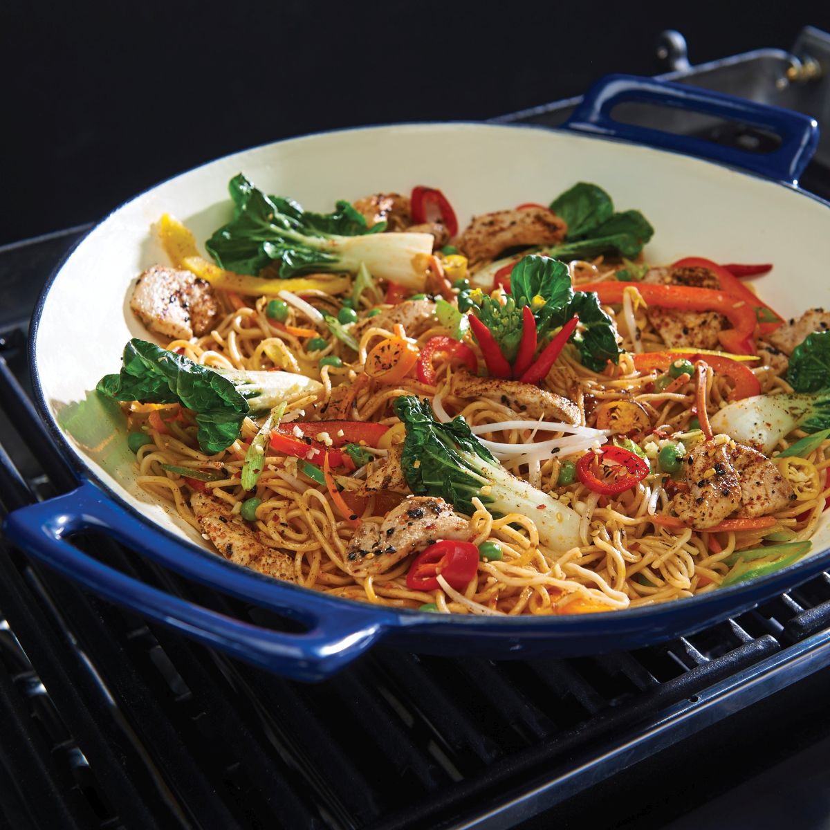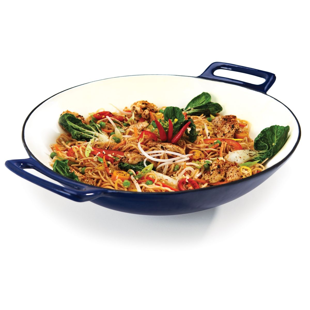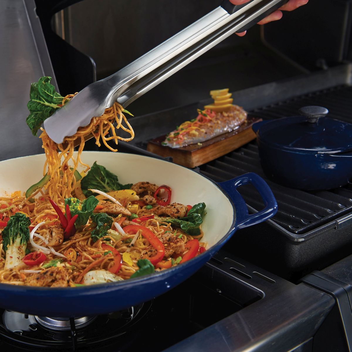 Прочное фарфоровое покрытие на чугунном основании делает вок для гриля Broil King® 69710, одним из самых популярных аксессуаров. Его очень легко чистить; кроме того, он обеспечивает постоянную прожарку благодаря способности чугуна удерживать и равномерно распределять тепло. Восхитительный дизайн, позволяет поднести к столу, приготовленное блюдо, прямо в воке.