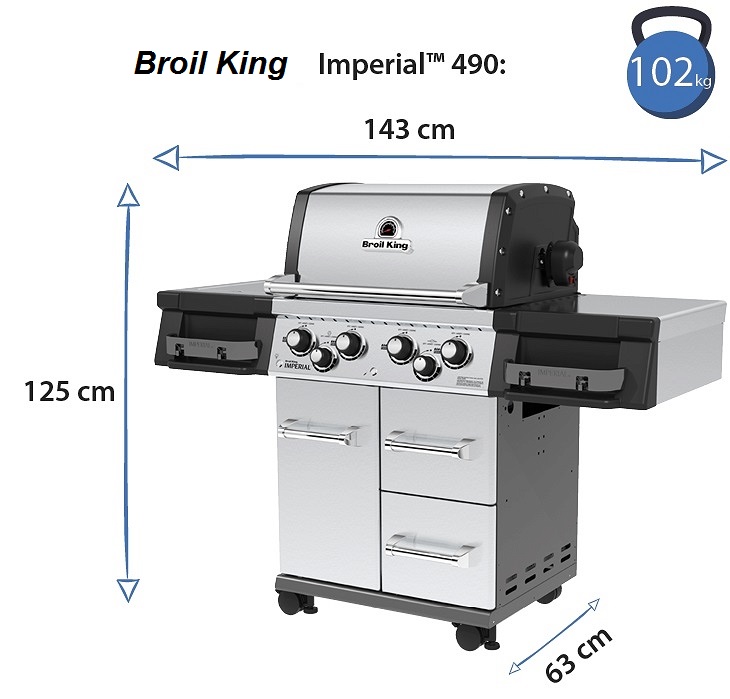 Газовий гриль Broil King® 996883 Imperial ™ 490 - це преміальний продукт з відмінним дизайном і гарною комплектацією. Потужна решітка з литої нержавіючої сталі, 4 незалежні пальники, бічна конфорка, електричний рожен, файно впишуться в Ваш інтер'єр і подарують Вам максимальну зручність при використанні.