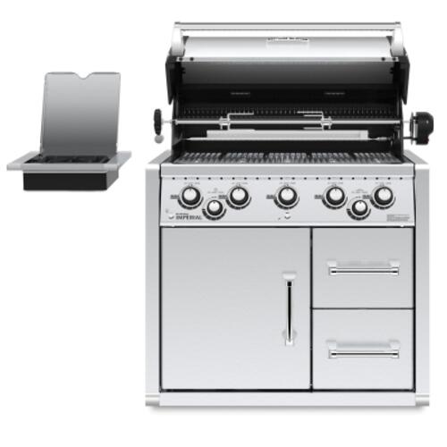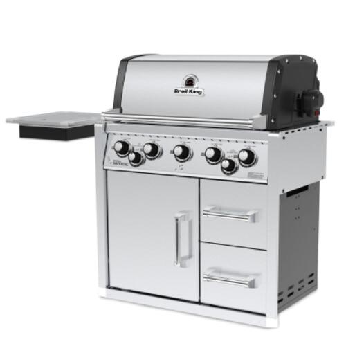 Вбудовувані грилі Broil King дозволять Вам створити найтепліший і найулюбленіший куточок вашого заміського будинку. Вбудований газовий гриль Broil King® Imperial™ 590 - це один із найпопулярнійших газових грилів, що вбудовується. Потужні решітки з литої нержавіючої сталі, 5 незалежних пальника, бічна конфорка, електричний вертел, і висувні ящики під грилем чудово впишуться у ваш інтер'єр і подарують вам максимальну зручність при використанні. Міцний корпус з нержавіючої сталі з висувними ящиками, легендарна кулінарна система Broil King і стильний зовнішній вигляд зроблять цей гриль прикрасою вашого заміського будинку.