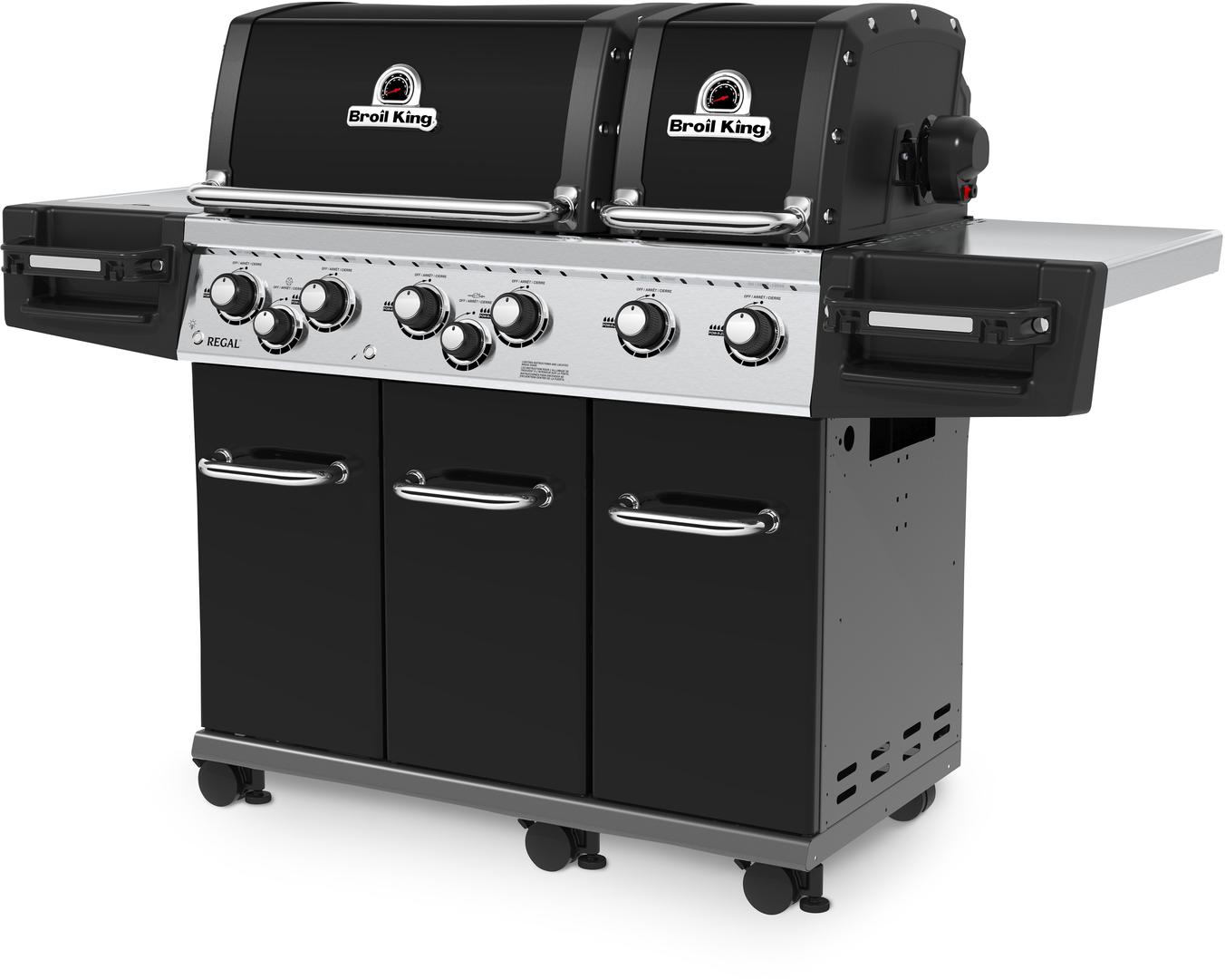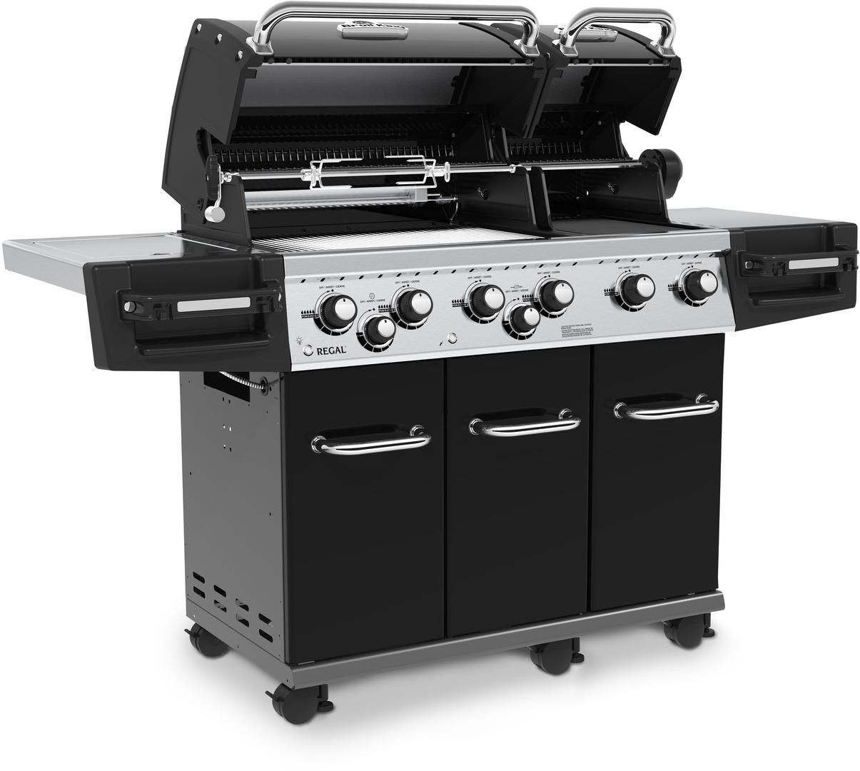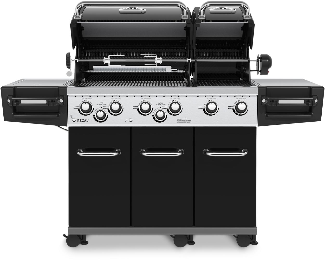 Велика решітка, дві абсолтно незалежні камери з підсвічуванням, електричний рожен, міцний корпус із сталі з висувними ящиками, легендарна кулінарна система Broil King і стильний зовнішній вигляд, зроблять гриль Regal™ XLS прикрасою Вашого заміського будинку.