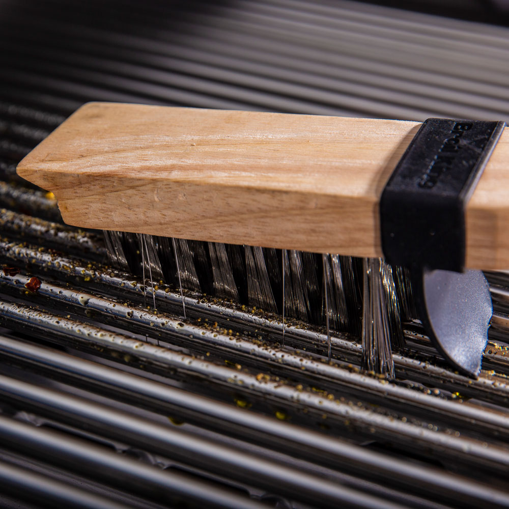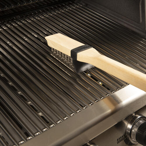 Зручна, потужна, щітка для гриля Broil King® 65229, з дуже міцними і довгими щетинками з нержавіючої сталі, для ідеальної чистоти, а дерев'яний шкребок допоможе ще краще і швидше очистити решітку. Запатентована система «захисту від бруду» у вигляді силіконового бризковика не пропускає бруд під час чищення решіток. Також щітка має вбудований гачок на дерев'яній ручці – ідеальне поєднання практичності та міцності. Був би у Папи Карло гриль, він би змайстрував собі таку надефективну щітку.