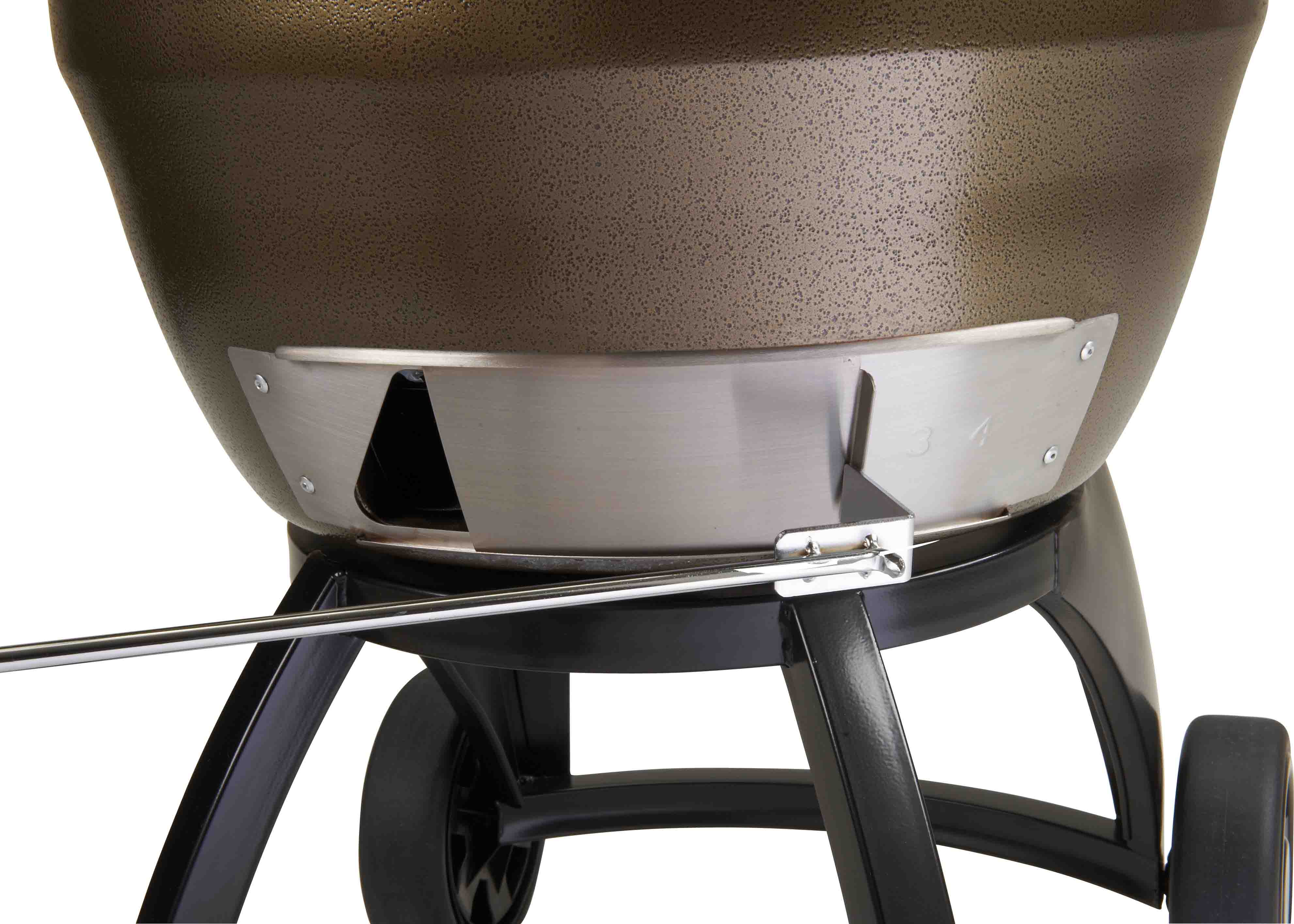 Благодаря своей уникальной конструкции угольный Гриль Broil King Keg прекрасно удерживает тепло. Стенки гриля изготовлены из толстой стали и изолирующего материала обеспечивающие непревзойдённые теплоизолирующие свойства. В отличии от других грилей системы камадо наружные стенки этого гриля не нагреваются даже при продолжительной работе.