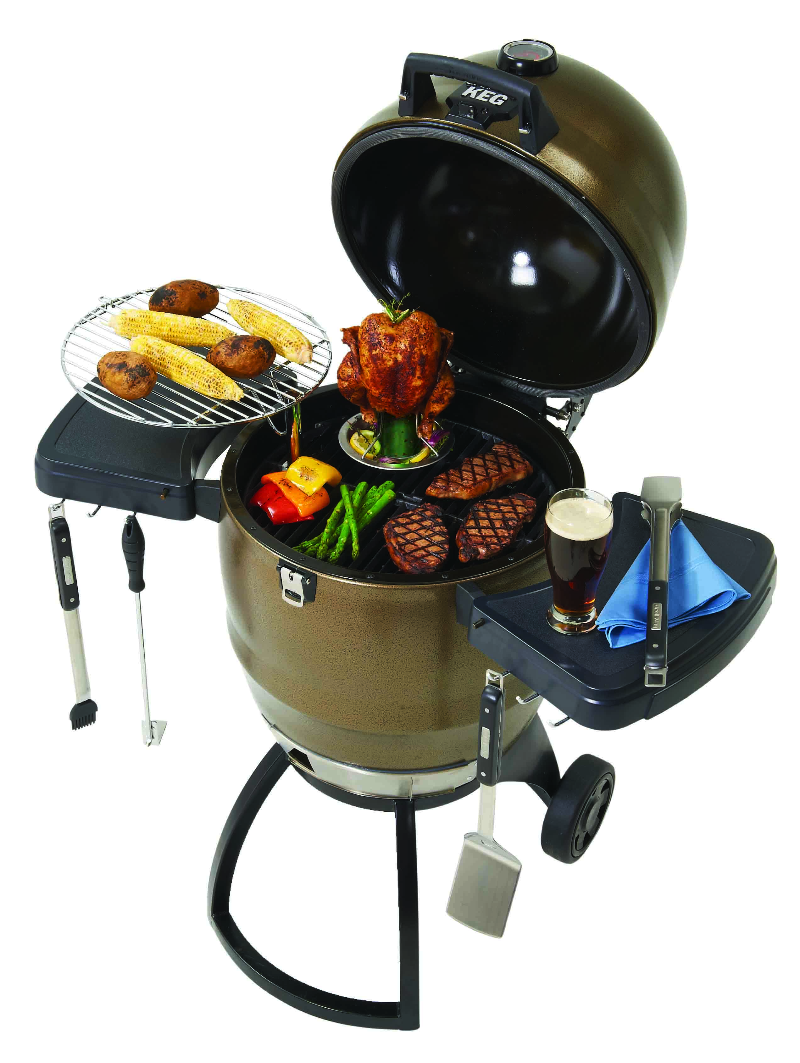 Угольный гриль "KEG" - это действительно новое слово в производстве печей "камадо" от торговой марки Broil King! Искушённые в своём деле, инженеры знаменитой канадской компании снова продемонстрировали своё исключительное мастерство, усовершенствовав и без того, практически, совершенную технологию. Как и другие его аналоги, гриль "KEG" не только превосходно сохраняет тепло внутри, но и очень равномерно распределяет его, в результате чего, все продукты получаются потрясающе сочными и обладают отличными вкусовыми качествами. Однако, в отличии от своих керамических "собратьев", "KEG" полностью изготовлен из металла, что практически устраняет проблему опасности механических повреждений. При этом он имеет значительно меньший вес, так как вместо толстого монолитного материала, здесь используются двойные стенки из листового металла. Таким образом "KEG" работает по принципу термоса, что также защитит Вас от ожогов при прикосновении к внешней его поверхности. Ещё одно его немаловажное преимущество - это мобильность (в нём специально предусмотрена возможность установки на обыкновенном автомобильном фаркопе), а главное - его исключительная простота в использовании. С ним Вы сможете играючи приготовить сочные и нежные стейки, ароматный шашлык, отличные овощи - гриль и очень многое другое, не имея при этом никаких особенных кулинарных навыков.