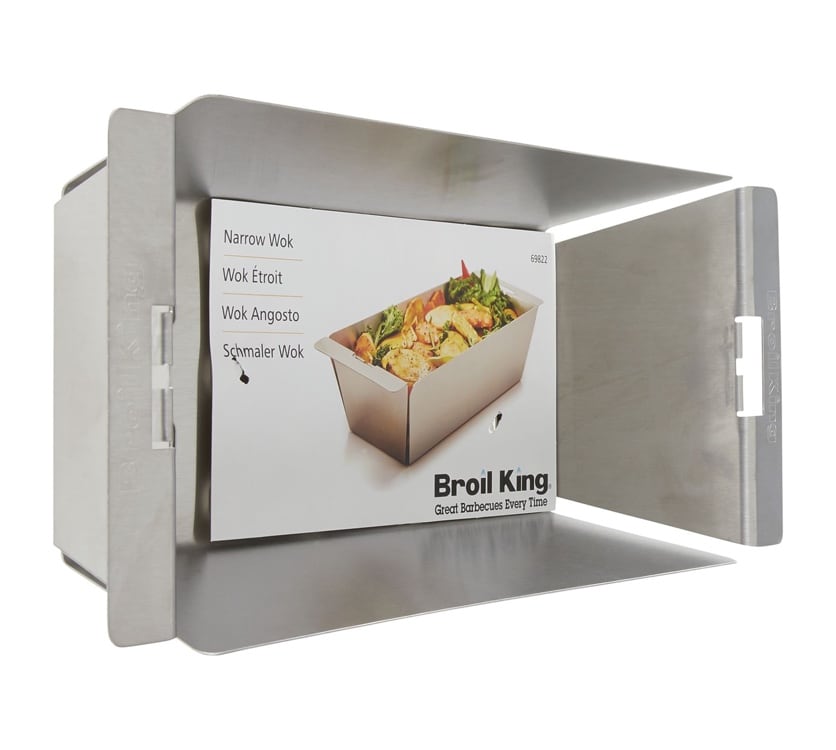 Вузьке перфороване деко Broil King® 69822 - це дуже зручний аксесуар для приготування овочів. Створений для встановлення на одну решітку грилів Broil King®, або замість неї і дозволить заощадити місце. Вам достатньо зняти одну решітку з Вашого гриля, і встановити на її місце цей вок, або просто помістити його зверху ґрати. Він повністю зроблений з нержавіючої сталі і має унікальну конструкцію, завдяки якій його можна використовувати з листом Broil King® 69722. Цей аксесуар сумісний з універсальним зйомником Broil King® 60745, за допомогою якого легко переміщається. Так само для зняття з гарячого гриля, використовуйте прихватки, жароміцні рукавички або рукавиці. Підходить для всіх типів грилів.