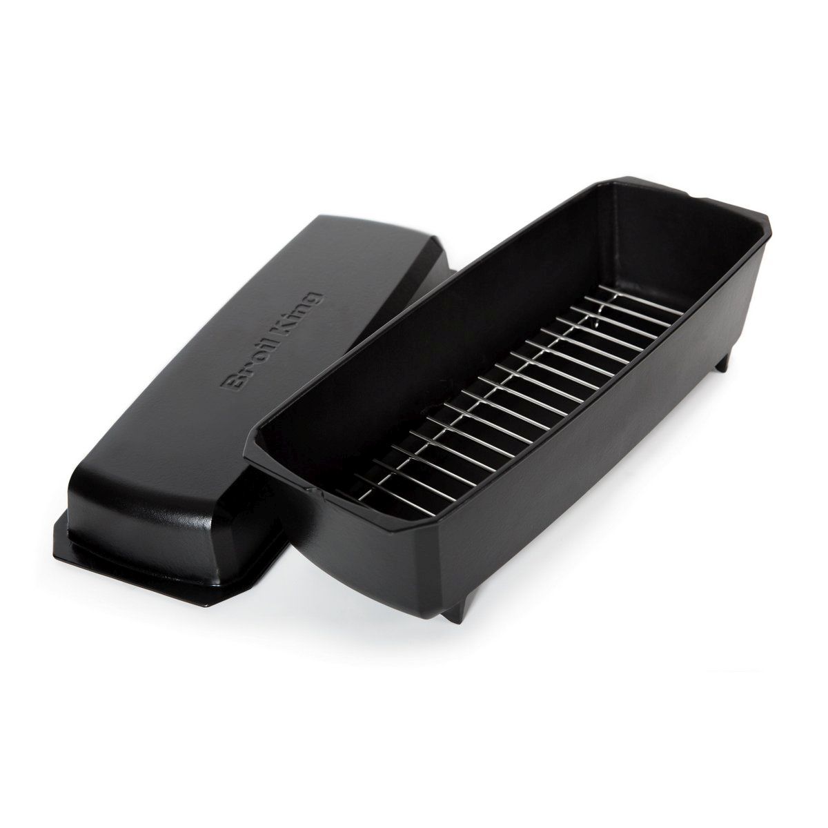 Нарешті, чавунне блюдо для приготування соковитих ребер. Жаровня для реберець Broil King® 69615 зроблена з важкого чавуну, покритого міцною матовою емаллю, і має вбудовану решітку, щоб реберця всередині не прилипали до поверхні. Жарівня ідеально підходить для грат або системи Flav-R-Wave™ гриля Broil King®. У ній можна приготувати від 1 до 4 наборів ребер одночасно. Чавунна гусятниця має розмір 40,6 х 14 х 10,2 см і чудово вам допоможе в приготуванні будь-яких став, чи то голубці чи смачна качка.