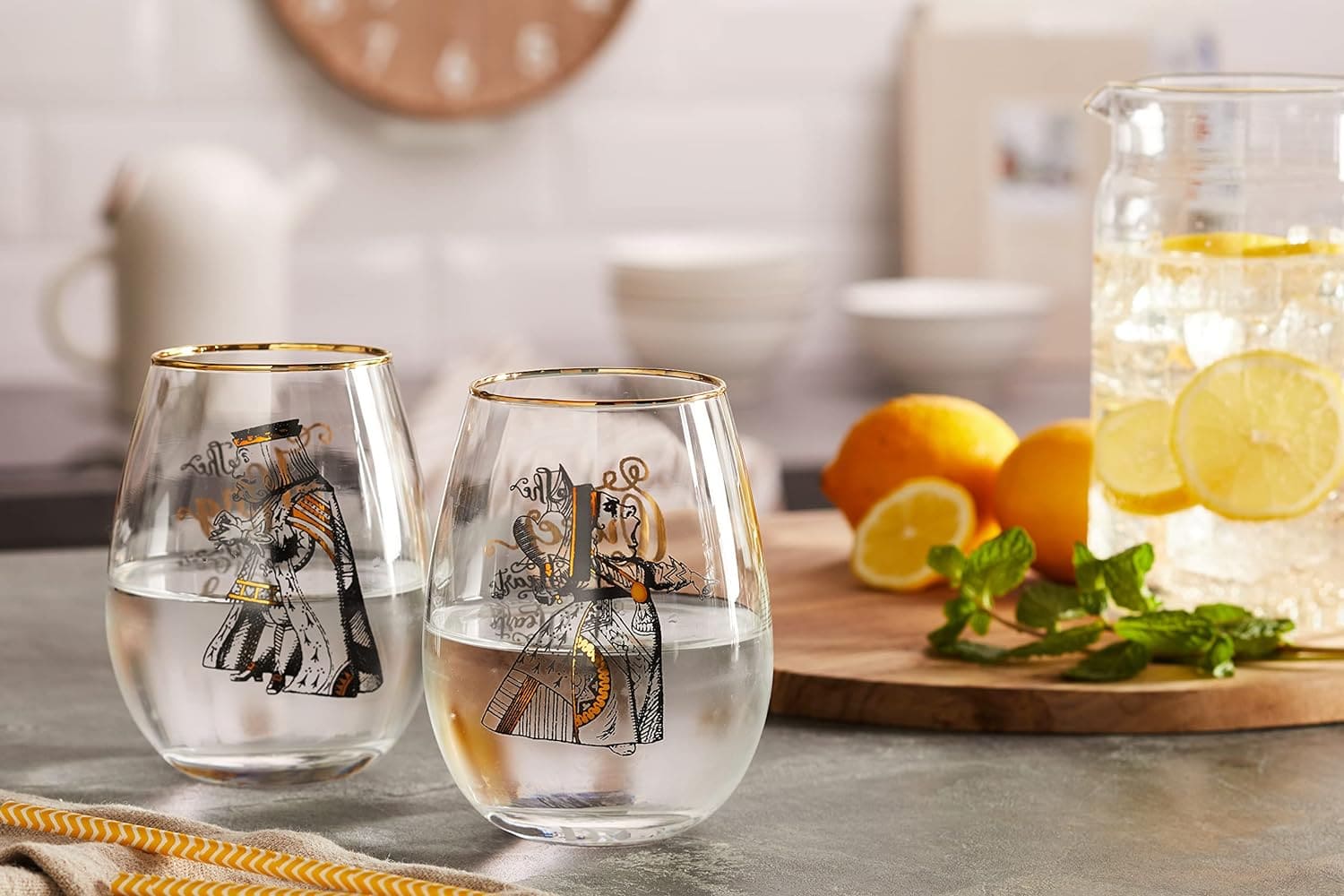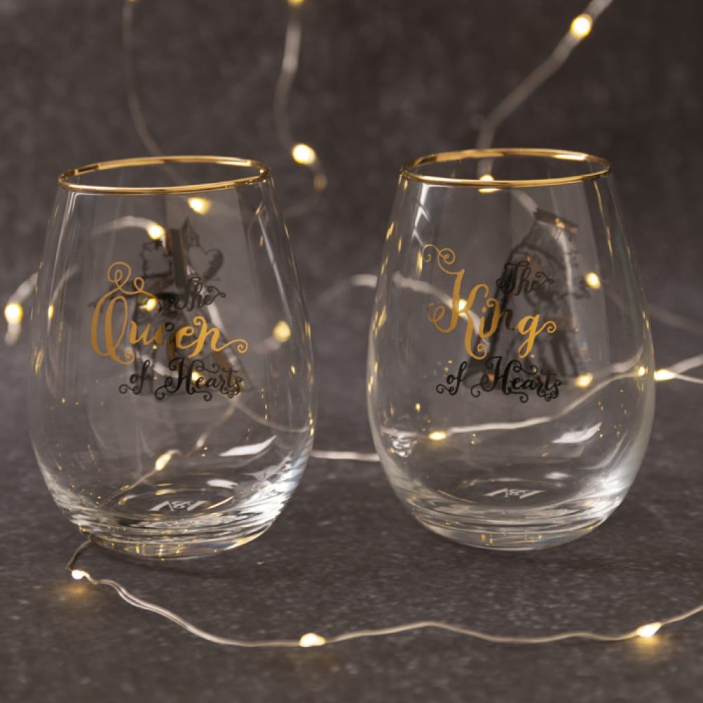 Пориньте у світ прекрасного разом зі склянками CreativeTops VA5236661, вони виготовлені з міцного скла. На кожній зображено знакових персонажів з книги «Аліса в країні чудес». На одній у чорно-золотих тонах зображена Королева Черви, на іншій - Король Черви. Набір стане ідеальним подарунком для пар, ювілеїв чи весіль. Підходять для миття в посудомийній машині. Набір упакований у стильну, фірмову, подарункову коробку із зображенням сцен із казки Alice in Wonderland, а для того, щоб відкрити її, необхідно вирішити головоломку: знайдіть вкладку «Потягни мене» на стрічці і побачите сюрприз, що ховається всередині!