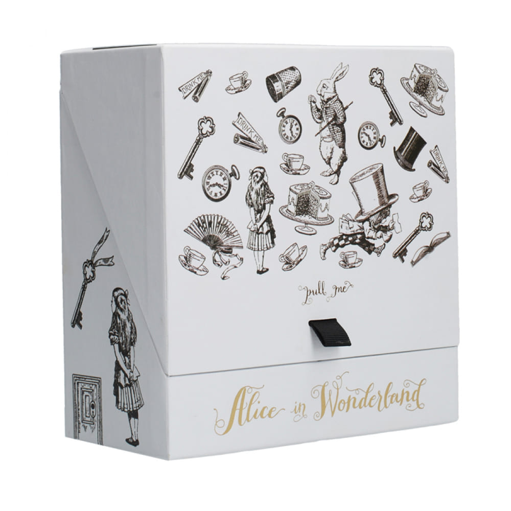 Пориньте у світ прекрасного разом зі склянками CreativeTops VA5236588, вони виготовлені з міцного скла. На кожній зображено знакових персонажів з книги «Аліса в країні чудес». Ілюстрації намальовані від руки у чорно-білих тонах, у центрі розміщена видатна цитата: «Ми всі тут божевільні». Склянки підійдуть як для вживання напоїв у родинному колі, так і для прийому гостей, кожен буде захоплено розглядати химерні мініатюри, що прикрашають цей посуд. Набір стане ідеальним подарунком для пар, ювілеїв чи весіль. Підходять для миття в посудомийній машині. Набір упакований у стильну, фірмову, подарункову коробку із зображенням сцен із казки Alice in Wonderland, а для того, щоб відкрити її, необхідно вирішити головоломку: знайдіть вкладку «Потягни мене» на стрічці і побачите сюрприз, що ховається всередині!