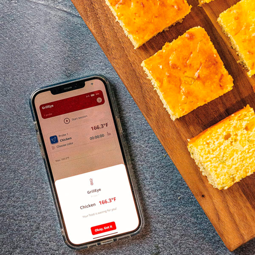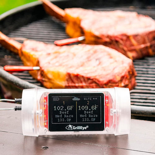 Інтелектуальний термометр GrillEye MAX з вбудованим модулем Wi-Fi дозволяє точно вимірювати температуру під час приготування на грилі, коптильні, або духовці. Пристрій керується за допомогою безкоштовної програми, сумісної з iOS та Android.