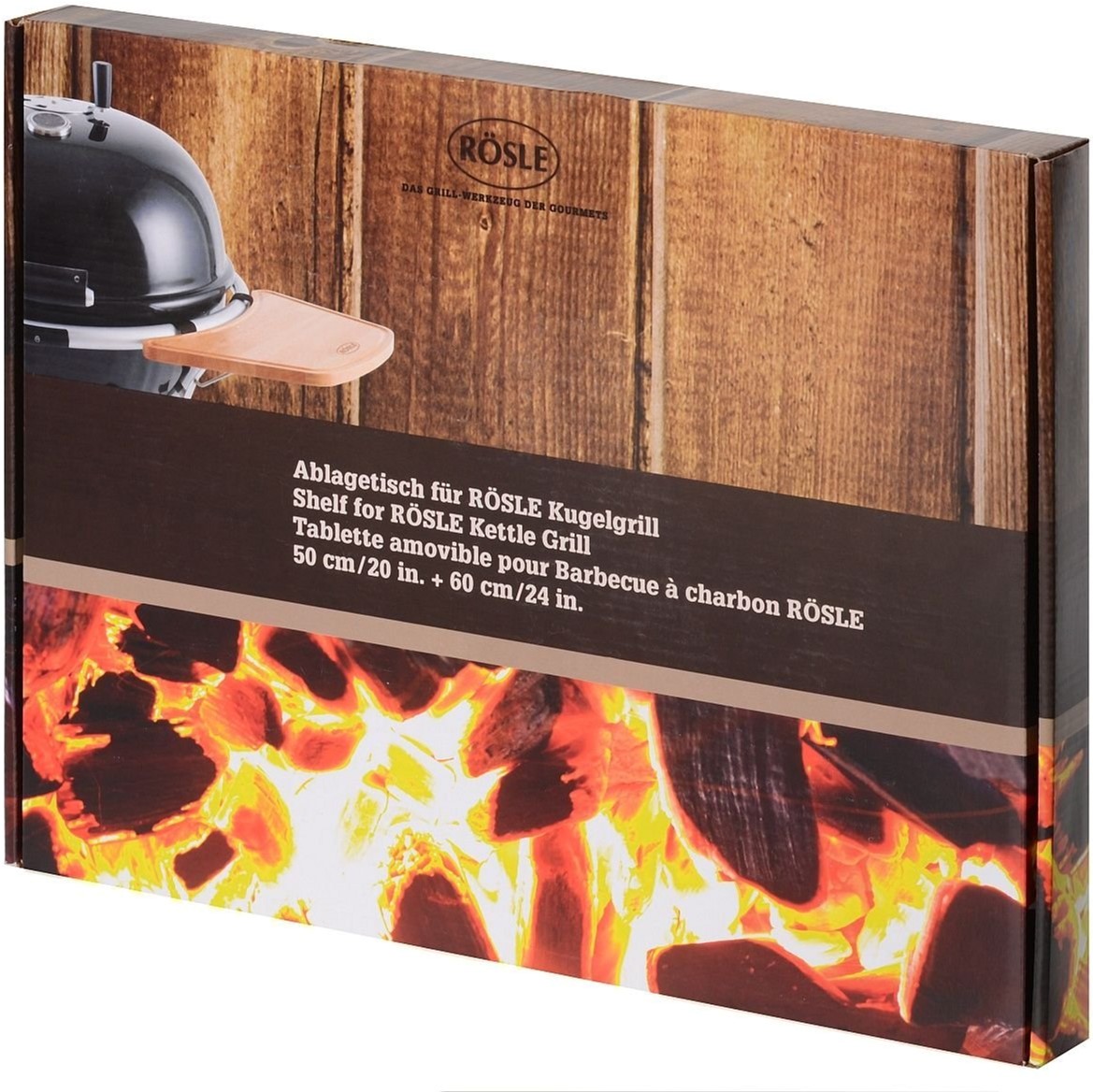 Боковая полка для гриля Rösle R25025 - деревянная доска с пазом для сбора соков. Может подвешиваться с обеих сторон Kettle Grill Rosle. Столик для крепления на грилях F50 / F60 / F50 AIR / F60 AIR / G60. Создан для того обеспечения комфортных условий во время приготовления пищи на гриле. На него можно класть необходимые продукты, ставить нужные ёмкости с приправами и многие другие вещи, включая рюмочки.
