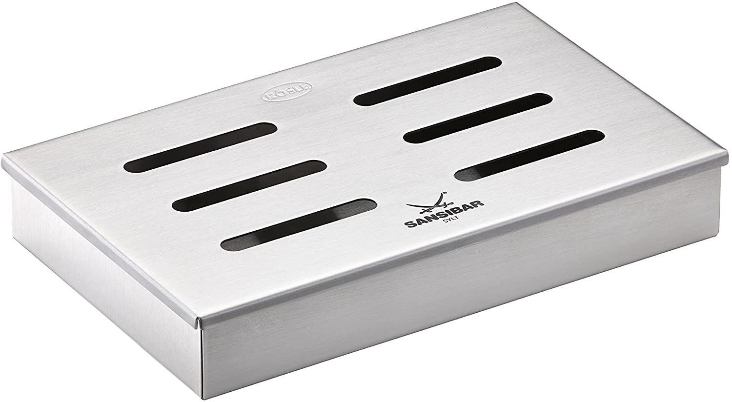 Арома-бокс для барбекю Rösle R43472, для надання тонкого копченого смаку в їжі. За допомогою ящика для копчення з нержавіючої сталі Ви з легкістю приготуєте рибу чи м'ясо на газовому та вугільному барбекю. Просто, додайте попередньо розмочену тріску, розмістіть ящик для копчення на систему Flav-R-Wave або на решітку, закрийте кришку, встановіть на грилі потрібну температуру і можна коптити. Набір складається із ящика для копчення + чотири пакетики по 500 гр. популярних пахощів, таких як: бук, вишня, яблуня, гікорі.