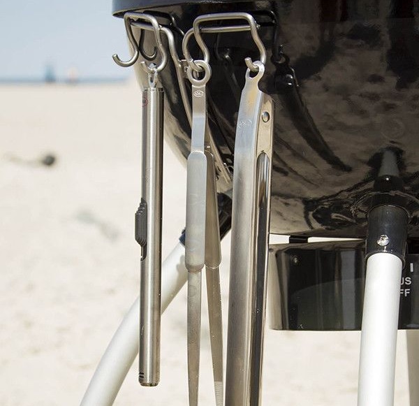 Тримач з гачками для барбекю-інструментів із нержавіючої сталі 18/10 Rösle R25043. Має 4 гачки, на яких Ви можете розмістити свої прилади. Кріпиться безпосередньо на гриль. Підходить для всіх моделей RÖSLE Sport діаметром 60 см.