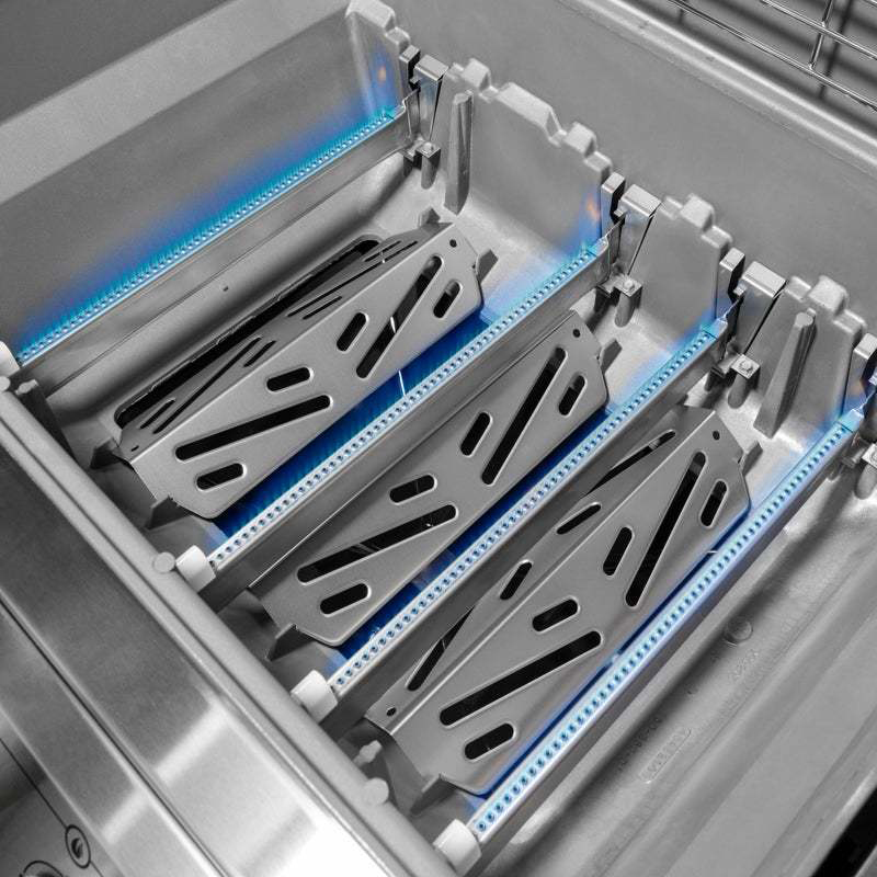 Три газові пальники GS4 high performance нового типу з прямокутної труби змінного перерізу загальною потужністю 11,43 кВт та зручні безступінчасті регулятори подачі газу для отримання оптимальних результатів при прямому та непрямому методі приготування.