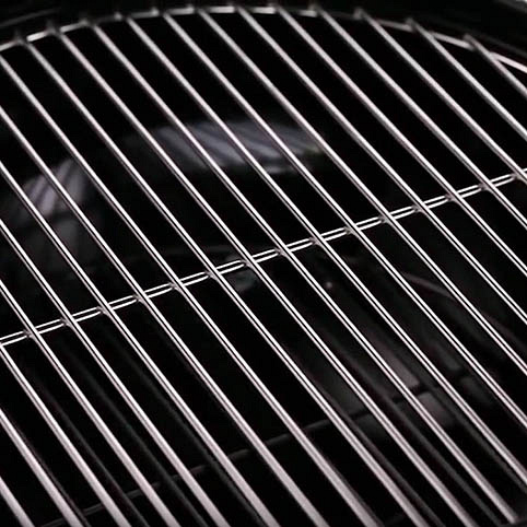Зручні сталеві грати діаметром 47 см. повністю безпечні для приготування страв і легкі в очищенні.